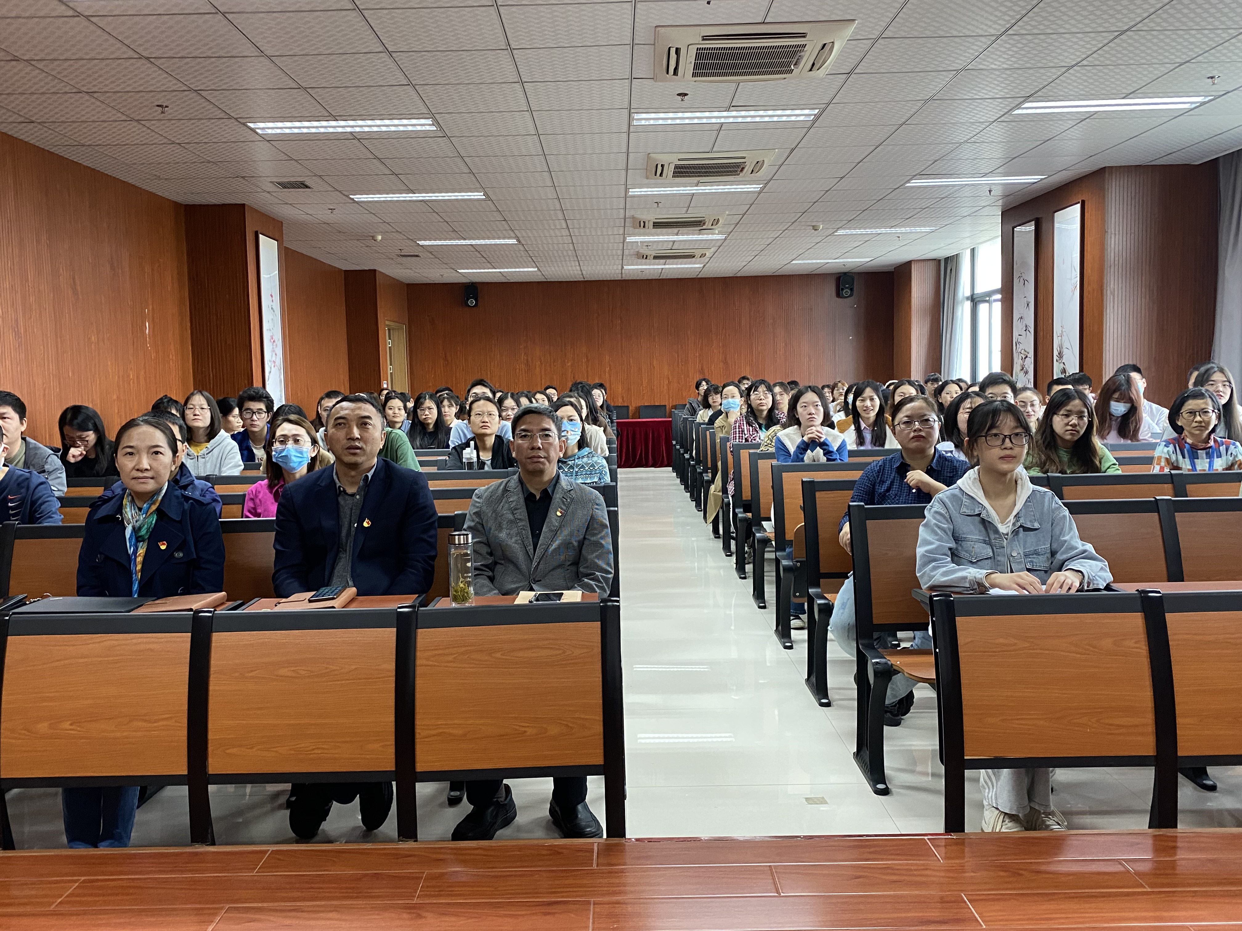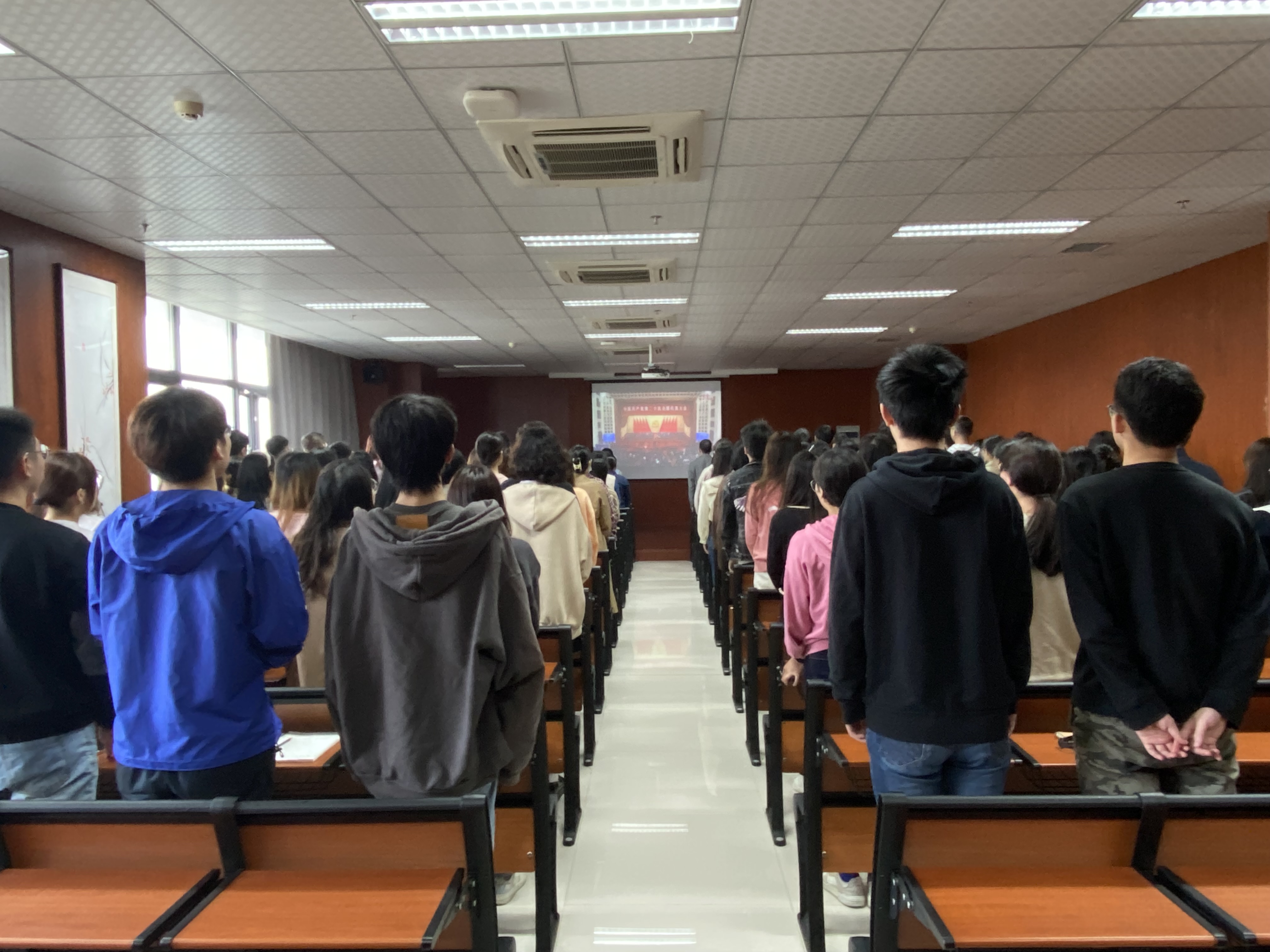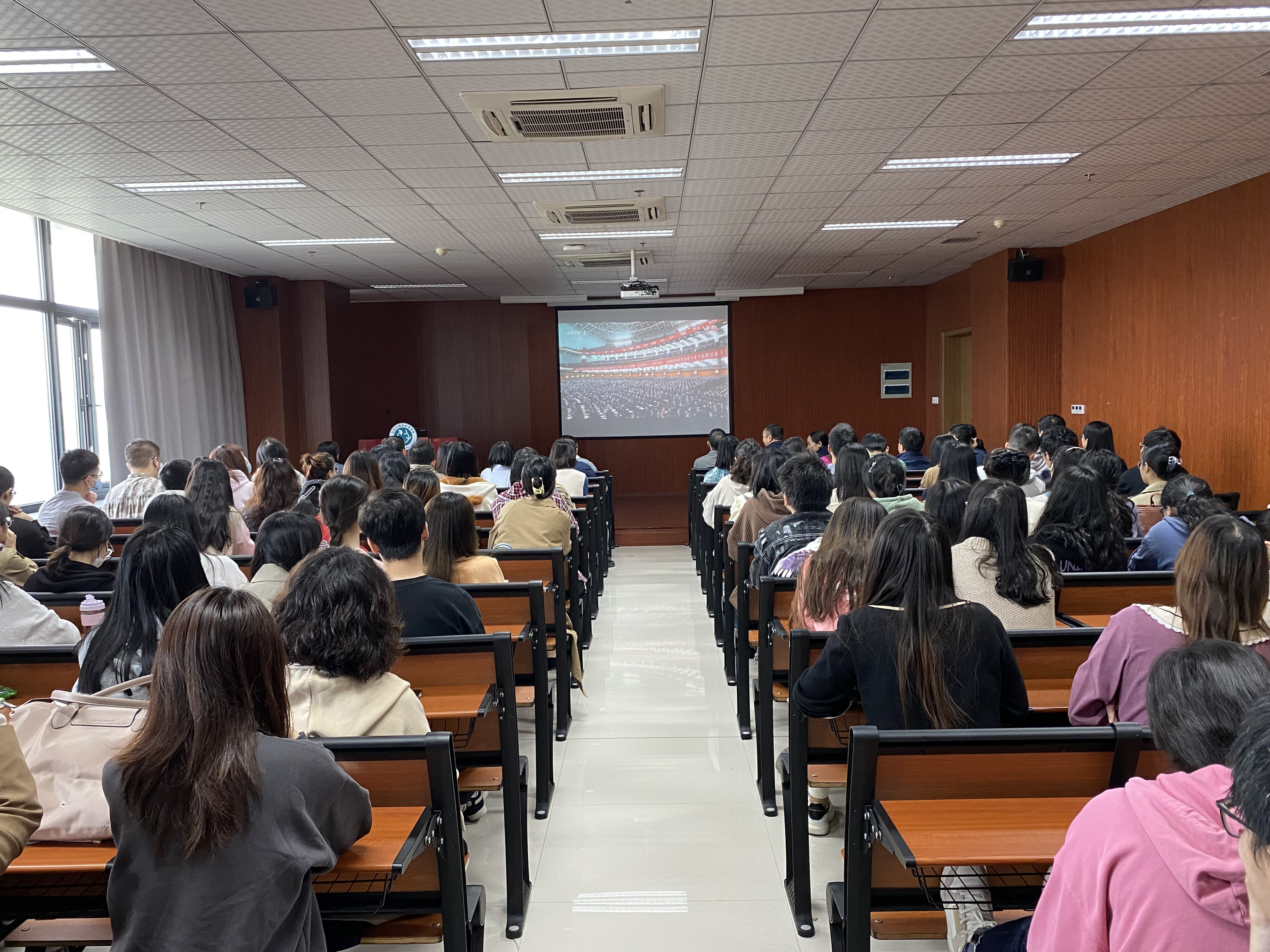 在集中观看现场,大家怀着激动的心情早早聚集一堂,期待共同见证这一重要时刻的到来。观看过程中,师生们聚精会神听报告,全神贯注作笔记,真正融入到党的二十大盛会召开的热烈浓厚氛围中。