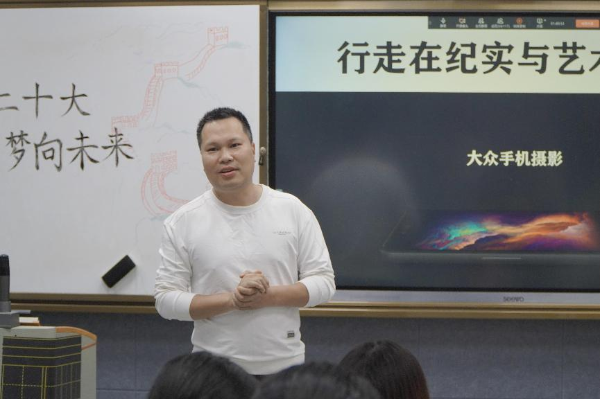 杭州市摄影家协会会员陈懋樊以“行走在纪实与艺术之间——大众手机摄影 ”为主题,分享了自己对于摄影的理解以及调色修图的心路历程,分析了各类型图片的构图,讲解了手机摄影的技巧等。教育学院金灿、汤殊一同学,成人小说 陈奕澄作为优秀学生干部分享了自己的工作经验。