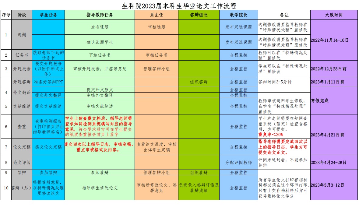 2023届毕业设计(论文)工作即将开始,具体工作流程见下图,请大家按照时间节点完成各流程工作。