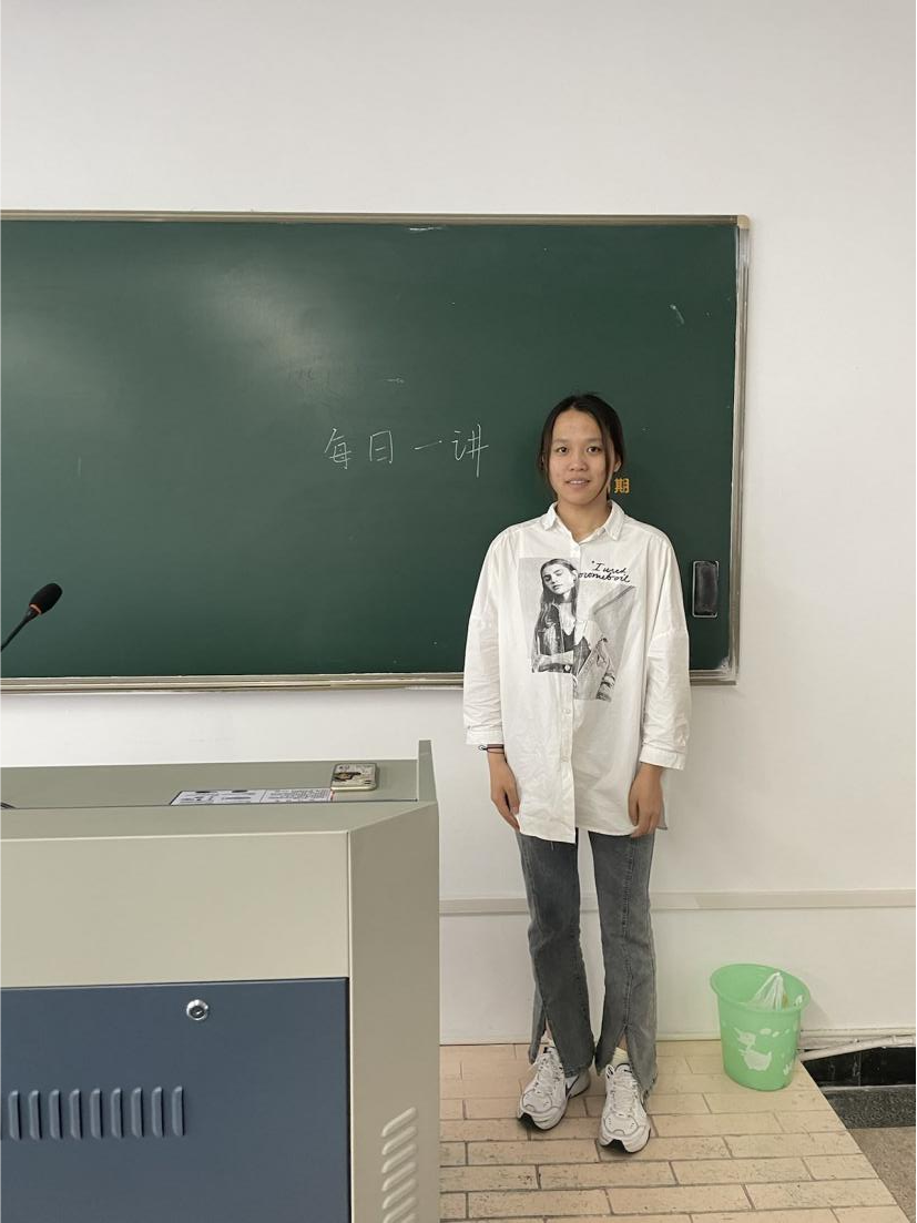 2022年10月27日星期四,生物科学(师范)216班在成人小说 仓前校区慎园1号楼108教室开展每日一讲活动,围绕十月主题“书写中国故事,讴歌奋斗人生”,周巧慧同学发表了题为“信件传声,故事抒情”的演讲。