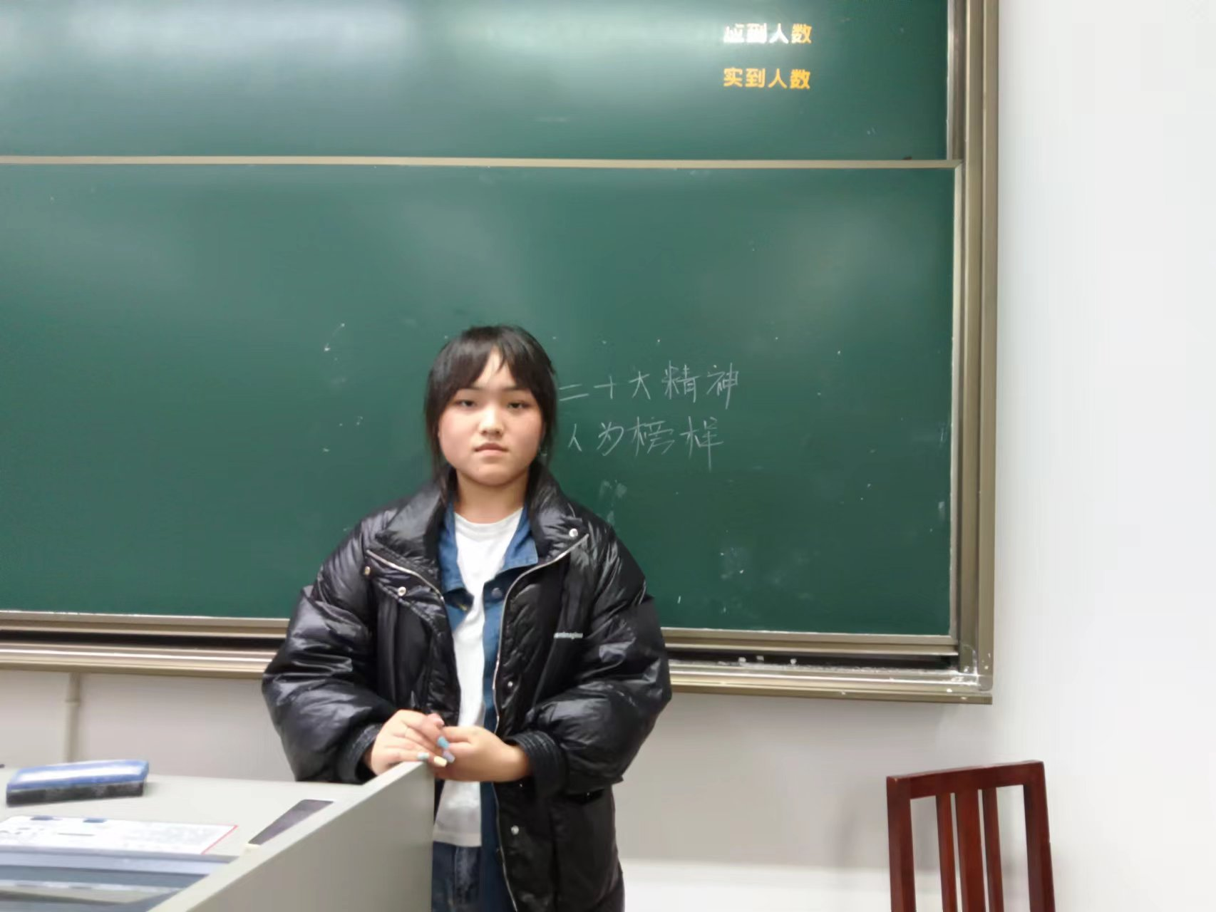 2022年11月18号, 环工211班如常开展了每日一讲的活动,宋明月同学利用课余几分钟,讲述了发扬党的二十大精神的前辈事例。声情并茂的讲述中,感染了在场的每一位同学们。