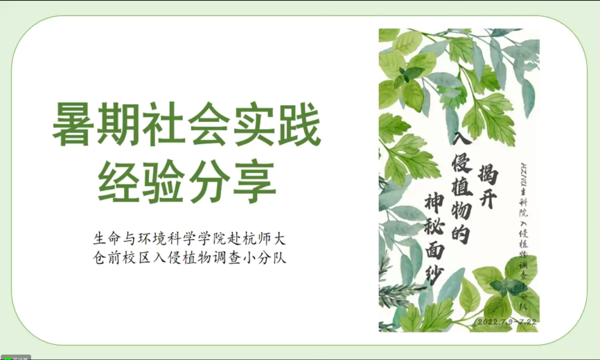 “我给植物亮身份”——杭师大成人小说 校园植物课堂建设社会实践团队团队负责人徐万浩同学以团队选题、重点团队答辩和最后材料整理收集,三个方面具体阐述了自己亲身实践过程中总结出来的经验。