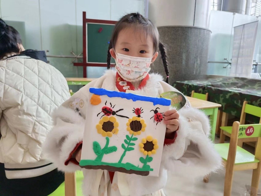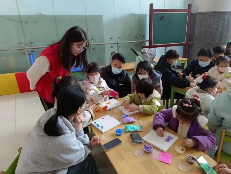 动手过程中,小朋友遇到困难或材料缺少,志愿者们都耐心帮助并指导小朋友,整个过程很顺利,小朋友们都完成了自己的黏土画。