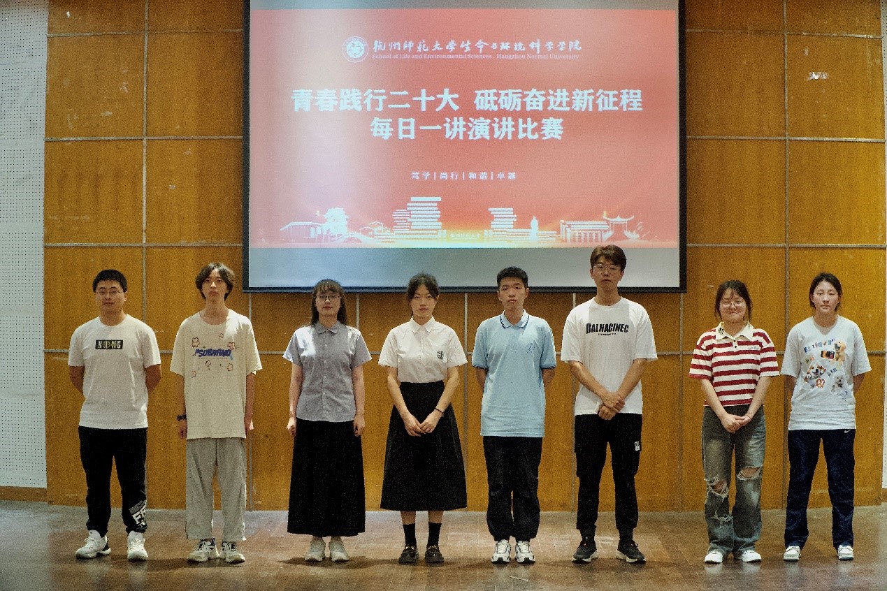在“青春践行二十大,砥砺奋进新征程”主题演讲比赛中,来自生物科学(师范)、生物技术、生态学等专业的9名参赛同学分别就“喜迎亚运”“强国有我”“团结奋斗,科学互助”“牢记初心使命,弘扬师德师风”“弘扬生态文明,共建绿色家园”“群策群力,争创一流”“115年征程,风雨杭师大”等主题展开精彩演说。