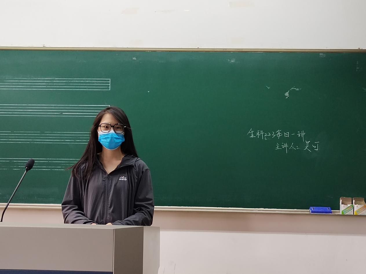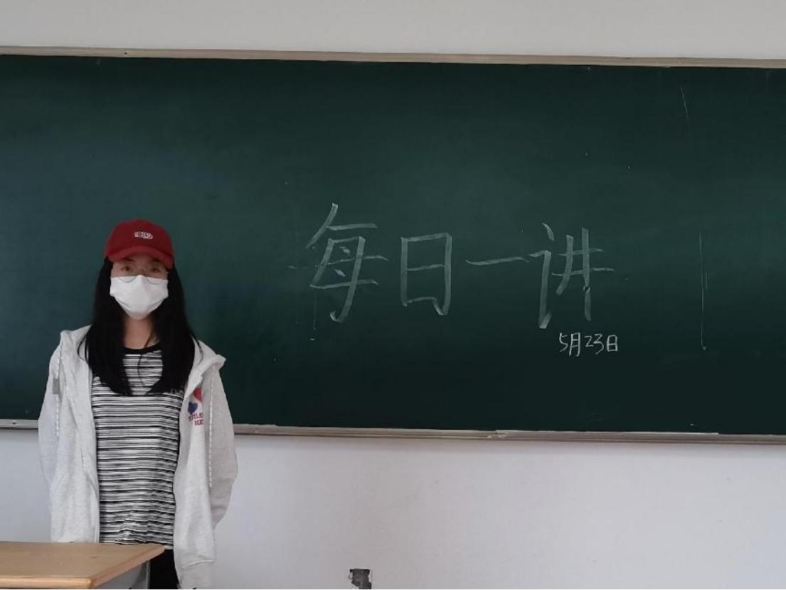 2023年5月20日星期五生科226班黄星儿在B114教室作了以劳模精神为主题的演讲。