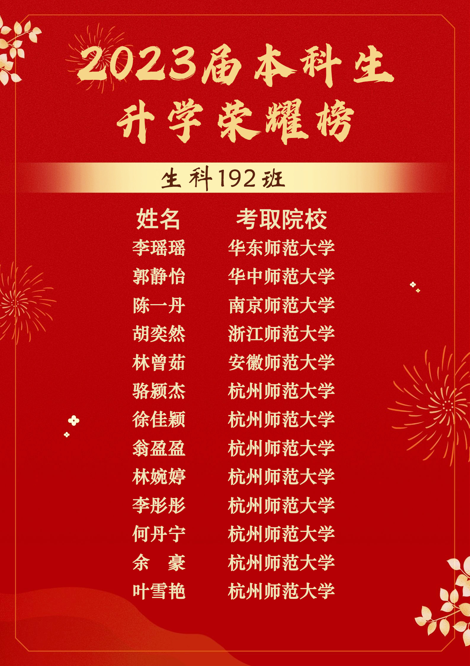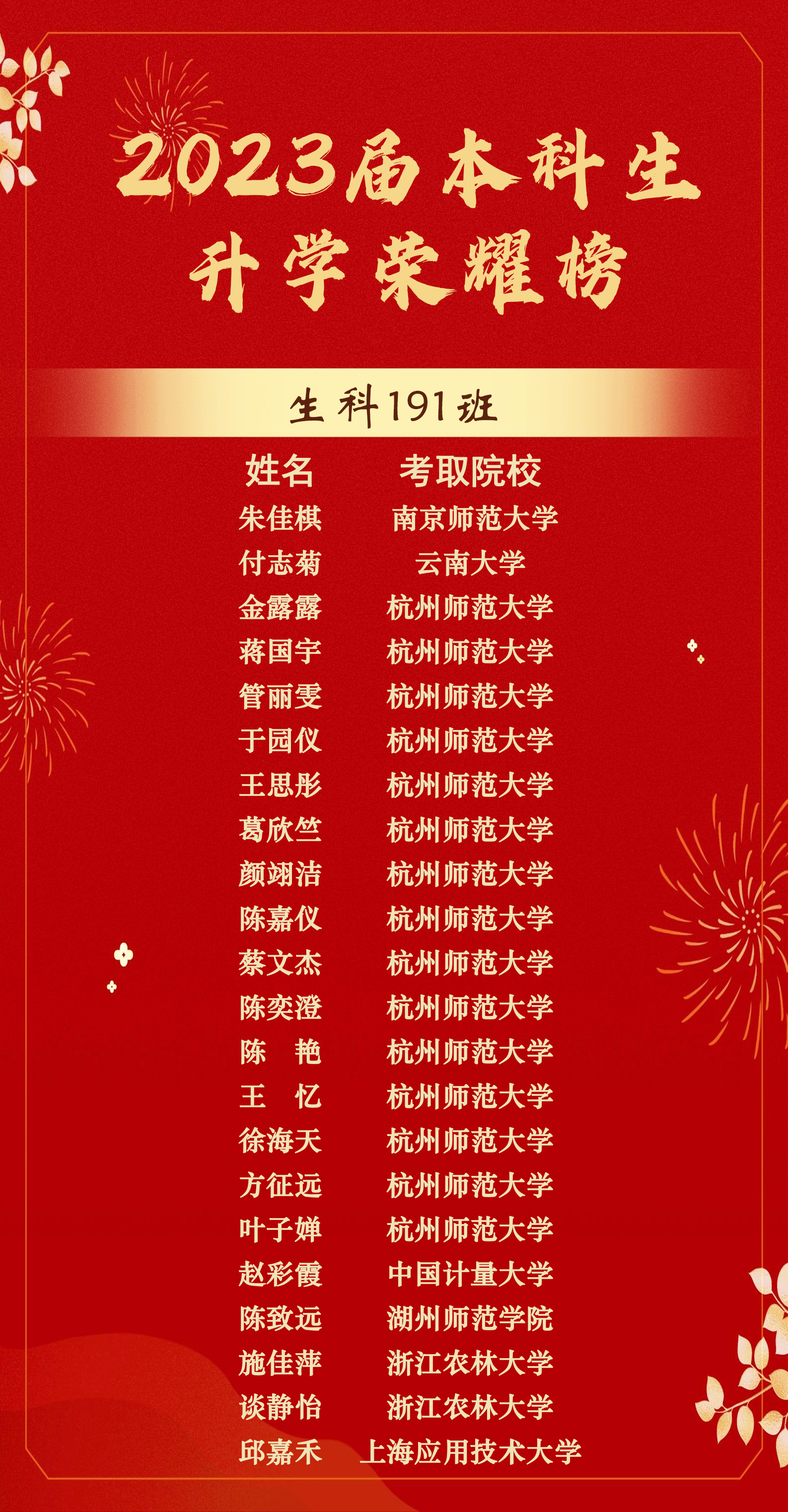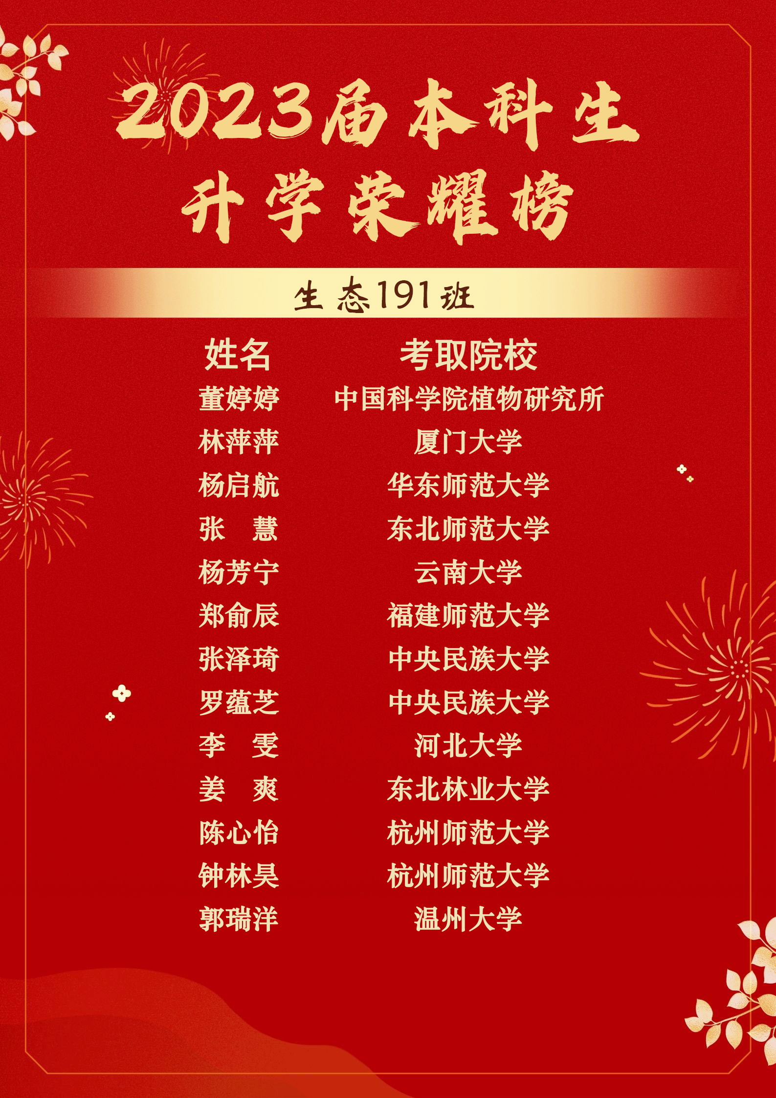 让我们向他们表示衷心的祝贺,愿未来的日子山河辽阔,也希望生科学子们能以他们为榜样,秉持“笃学、尚行、和谐、卓越”的院训,奋力拼搏,勇往直前!