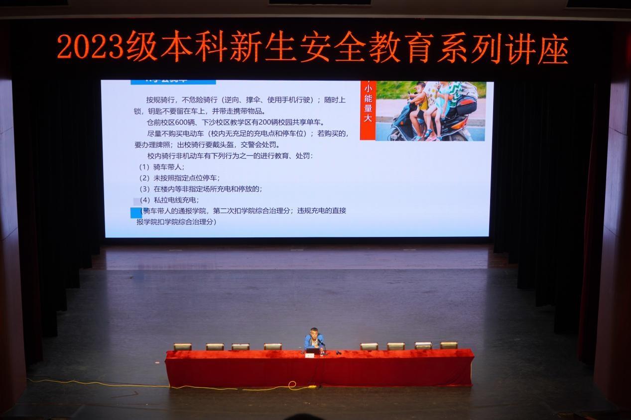 为增强新生安全防范意识,提升新生安全鉴别意识,10月10日晚,新生安全始业教育专题讲座下沙校区艺术中心剧场开展,成人小说 2023级全体新生参加。讲座由学校基础部主办,党委保卫部部长王飞主讲。