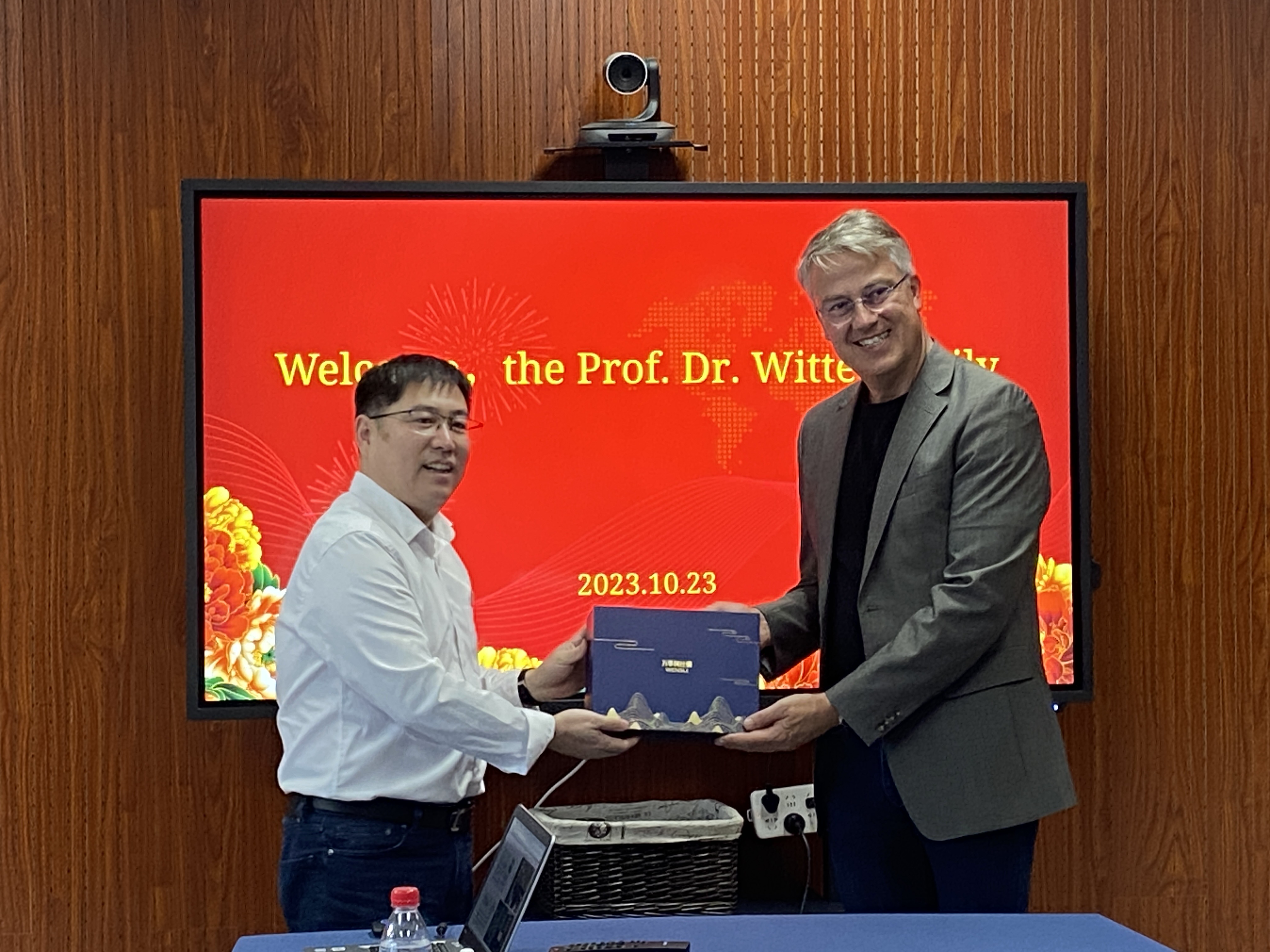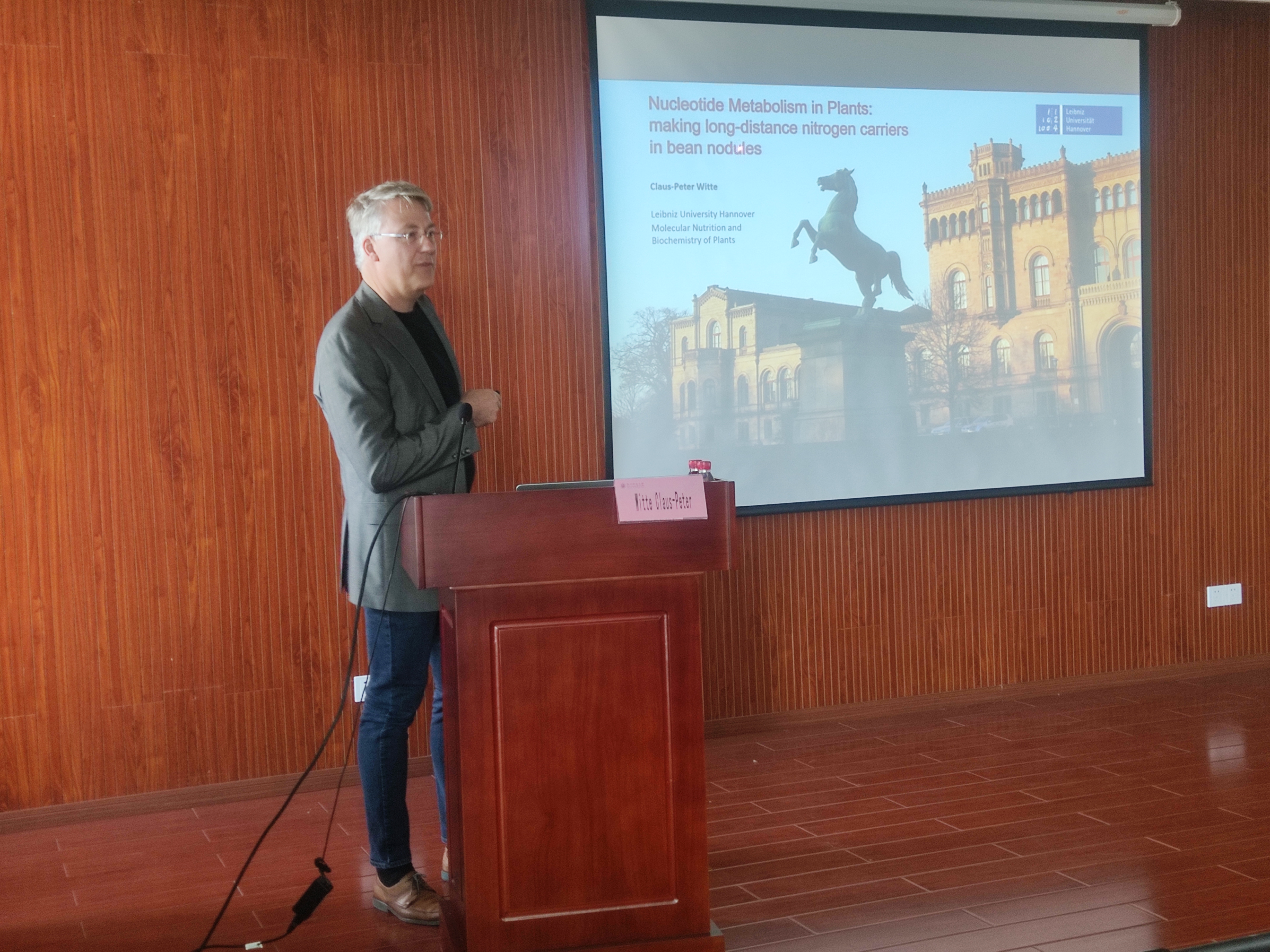 10月23日下午,成人小说 在慎园15-309学术报告厅举行了2023年第25期生科撷英讲坛,德国汉诺威大学Claus-Peter Witte教授,应邀来成人小说 为师生们做了题为“Nucleotide metabolism in plants: making long-distance nitrogen carriers in bean nodules”的学术报告,报告前,薛大伟院长和张立明书记与Claus-Peter Witte教授进行了座谈会,双方就加强两校科研合作交换了意见,在开展科研合作、教师和研究生互访交流等方面达成初步意向。