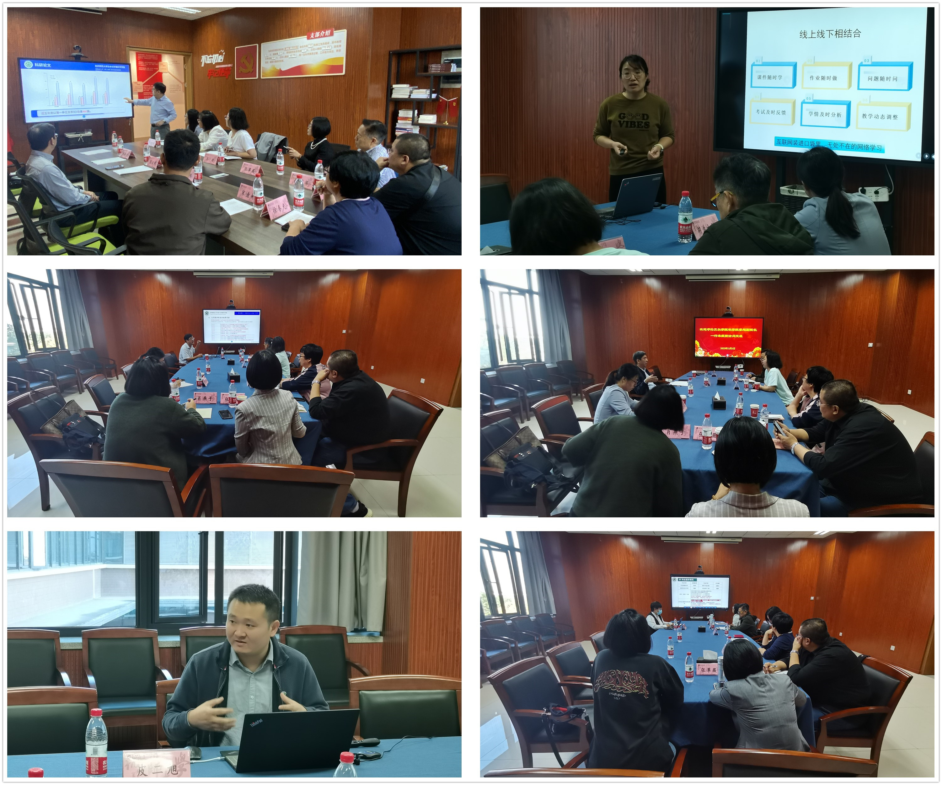 薛大伟教授从学院和专业概况、育人举措、育人成效、未来展望四方面做了题为《以师范认证为契机,全面提升生物科学专业人才培养质量》专题报告。白雪莲博士以《课程教学模式改革实践与思考》为题,围绕师范认证背景下“微生物学”课程教学方法的改革与实践进行了介绍,基于OBE的教育模式,重点讲解了如何以学生为中心把握课堂教学,如何采用线上线下相结合的方式引导学生课外学习,从而激发学生的专业兴趣,同时结合设计性实验的开展,阐述了实验教学改革中如何培养学生团队协作、坚韧不拔的科研精神,并与呼伦贝尔学院老师交流了思政教育在专业课程中渗入的方法与路径。陈哲皓副教授从深刻理解,把握师范专业认证要义、合理统筹,组织专业认证核心队伍、聚焦理念,渗透专业认证各个环节、持续改进,推动学院专业不断发展四方面做了题为《OBE理念在师范专业认证全过程中的贯穿和自评报告中的具体体现——成人小说 生物科学师范专业认证的认识与实践》专题报告。张立明书记从党建与中心工作双促双融,助推学院发展,坚持优化学科布局,促进学科交叉融合做了题为《党建与学科建设协同发展》专题座谈会议。皮二旭副教授就《生物化学》的课程概述、教学设计、教学环境、教学方法、创新特色以及效果评价,特别围绕线上线下结合的教学特色、课程思政改革进展等方面进行了题为《生物科学一流课程建设》专题报告。陈慧丽教授从专业基本情况、知名校友、师资队伍、学生指导与服务、教学资源、专业特色和优势 、育人成效、专业培养方案做了题为《生物科学(师范)专业建设及人才培养方案》专题报告。