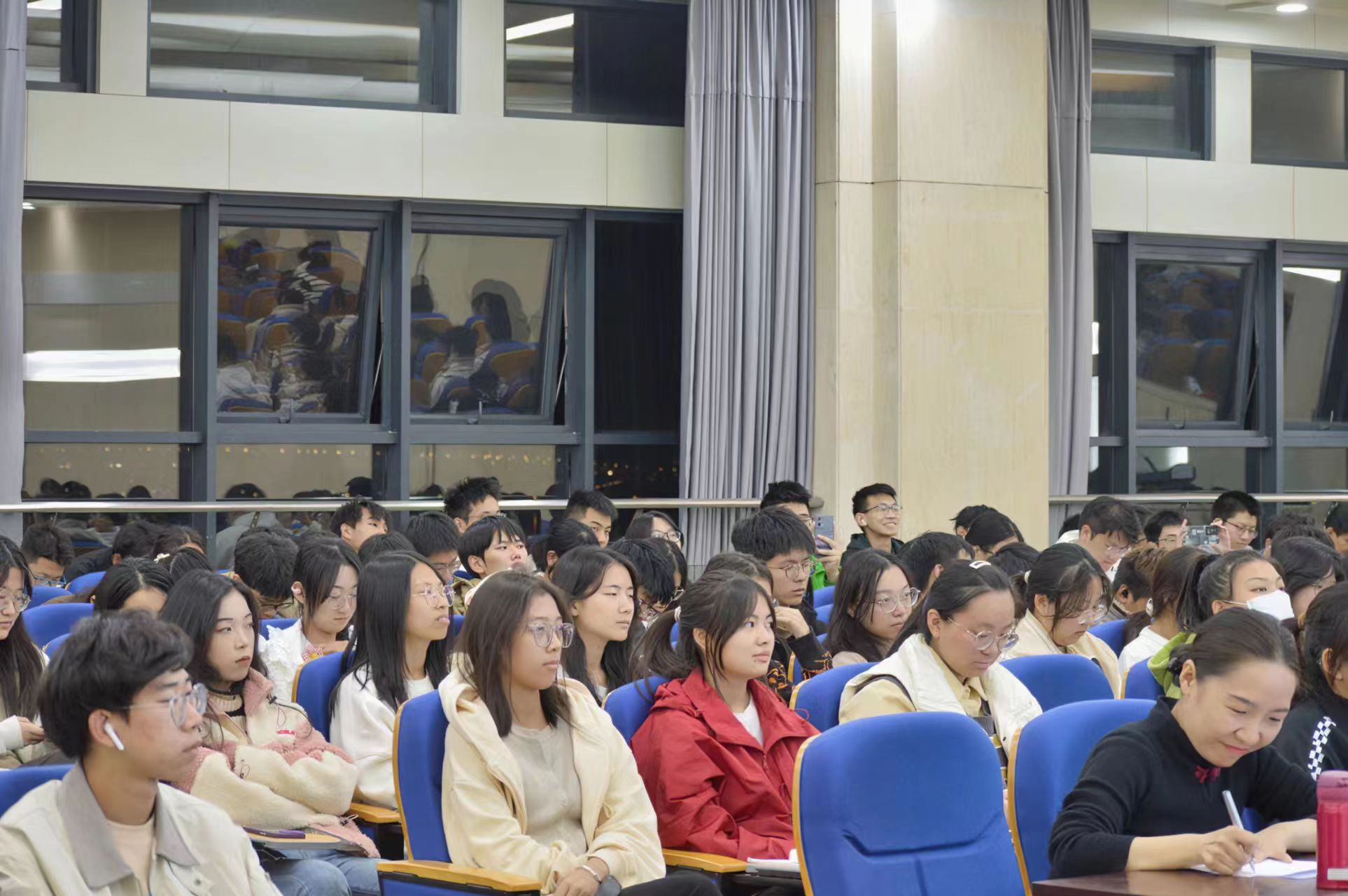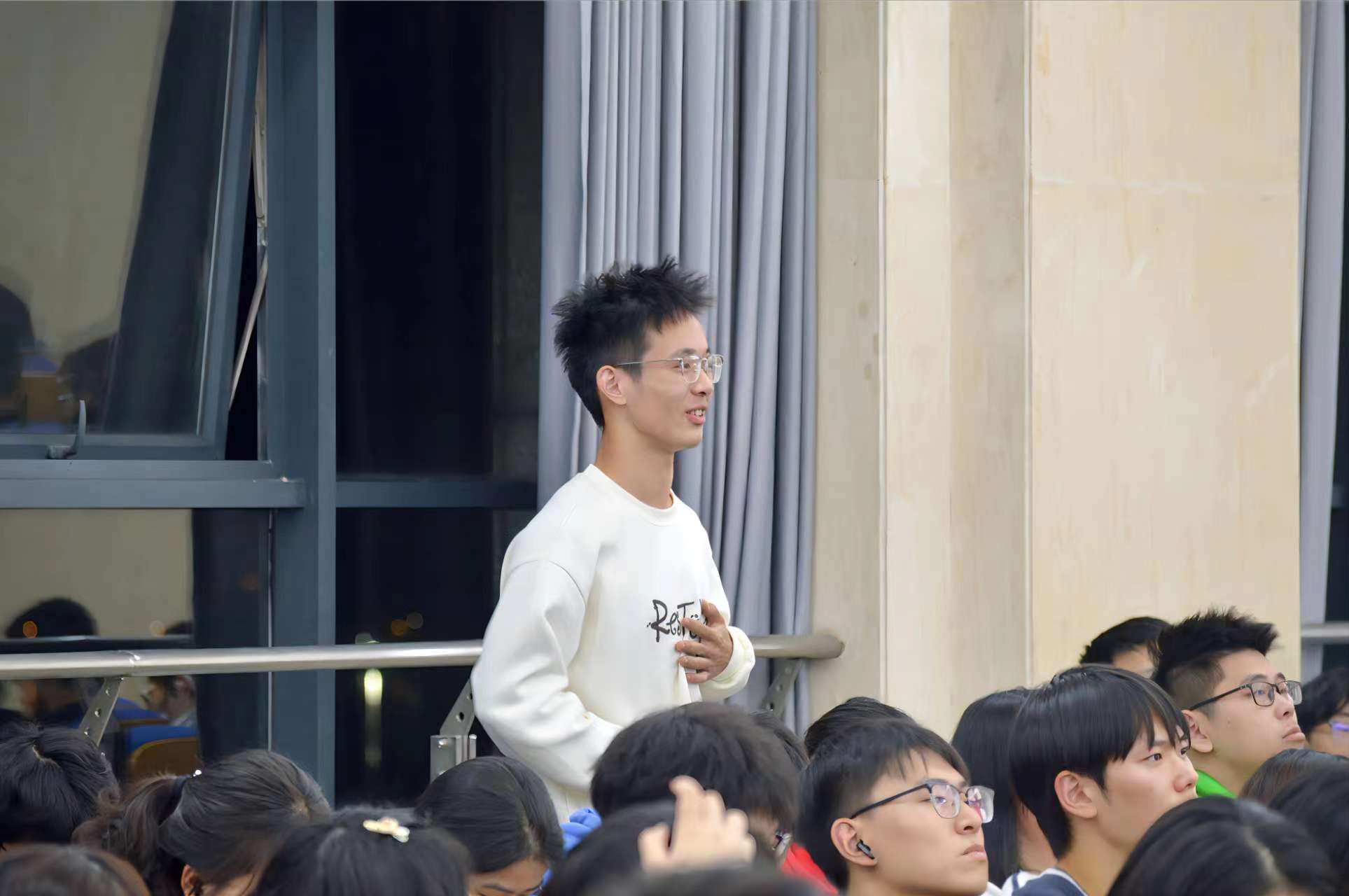 在提问环节,同学们踊跃提问,现场气氛热烈,纷纷表示了对忻皓二十三载守护绿水青山事迹的敬佩之情,也备受鼓舞,希望自己在将来也能为守护地球贡献出一份力量。