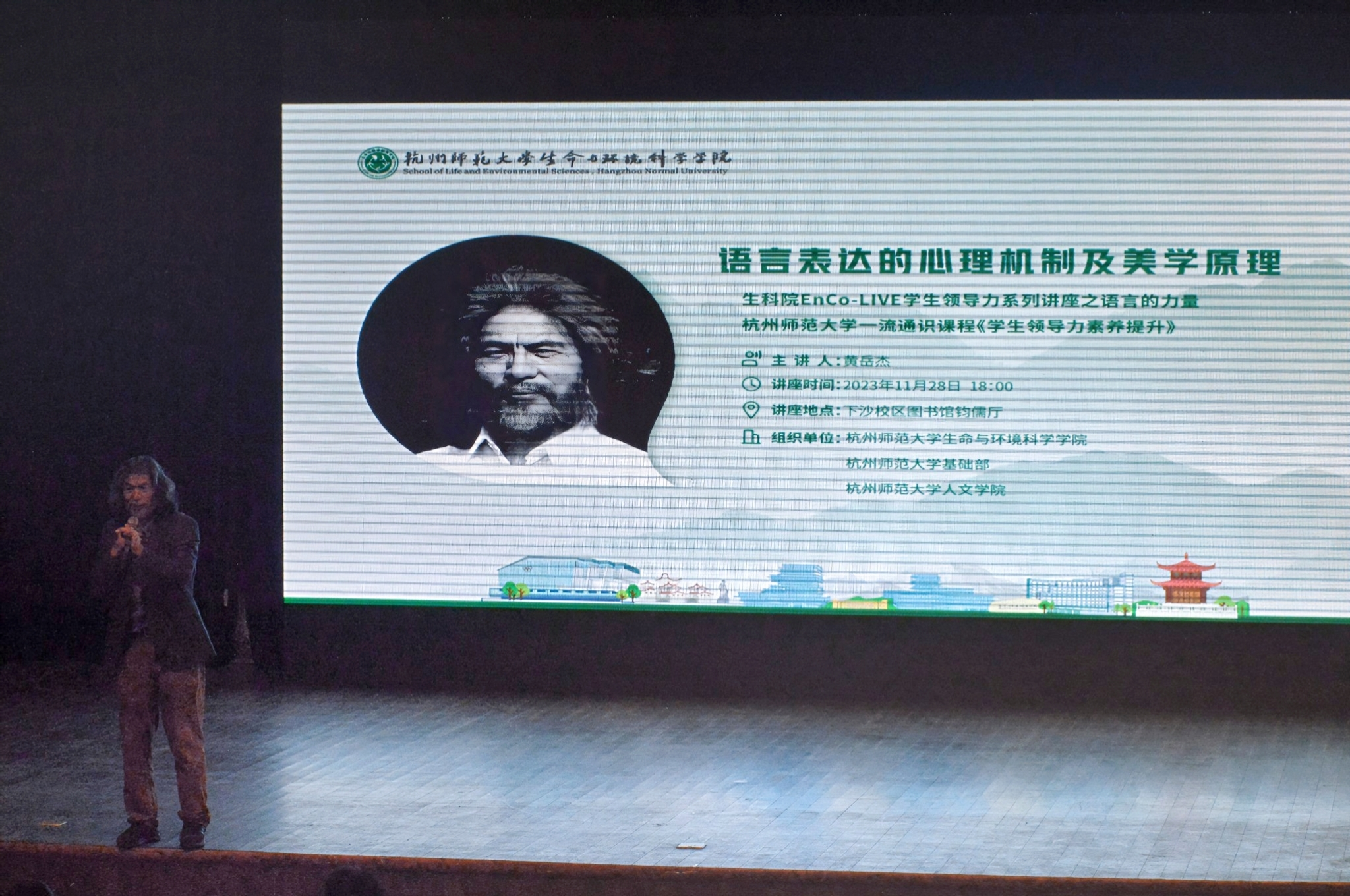11月28日,成人小说 、基础部、人文学院联合举办EnCo-LIVE学生领导力系列专题讲座之语言的力量。中国戏剧家协会会员、杭州市戏剧家协会副主席、浙江省首届高校优秀教师、杭州市五一劳动奖章获得者、人文学院教授黄岳杰在下沙校区钧儒厅作“语言表达的心理机制及美学原理”主题讲座。
