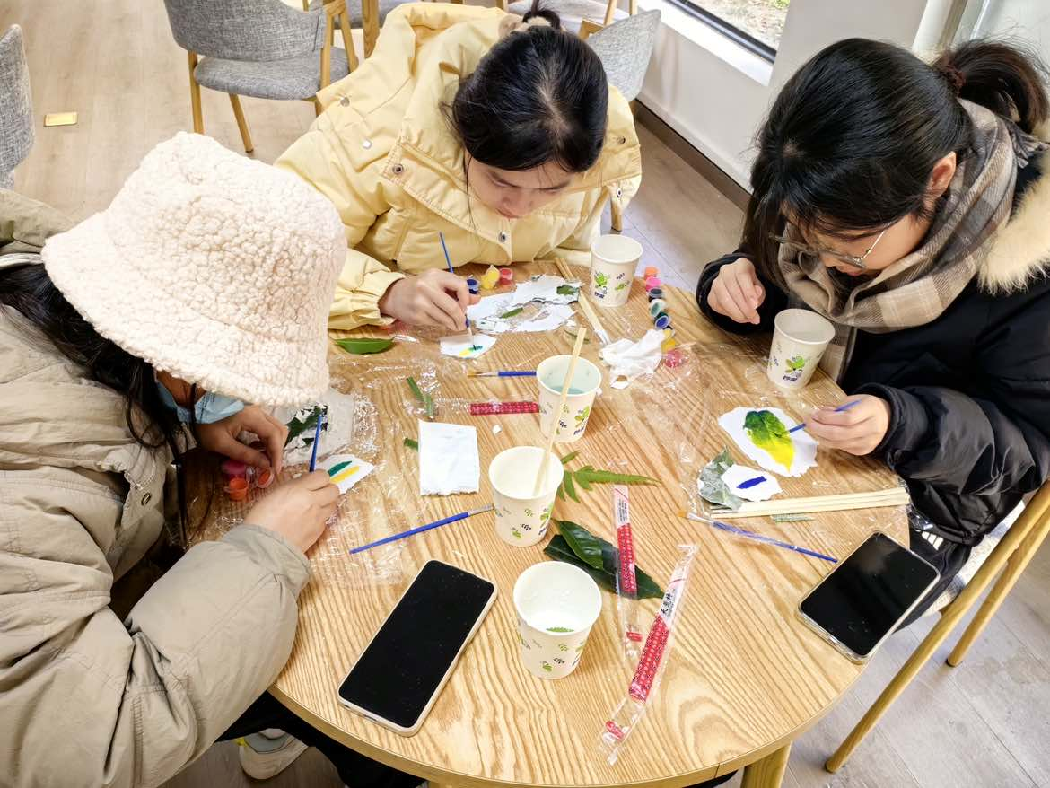 活动现场热闹非凡,科研部干事和协会会员们投身于叶子化石的制作过程中:挑选喜欢的叶片,用石膏封存,最后挥洒颜料以绘出心仪纹路。近距离地领略叶脉的纹路之美,不仅培养了他们对自然的兴趣,还提高了对美的感悟。随着化石的凝固,对生物实验的好奇深深扎根于每一位会员的心中。