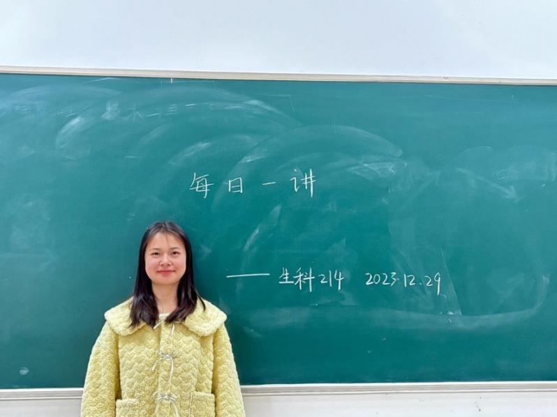 2023年12月25日,生技232班的林怡梦同学在B号楼216教室,进行了以“深化科研能力,加强科技创新”为主题的每日一讲活动。