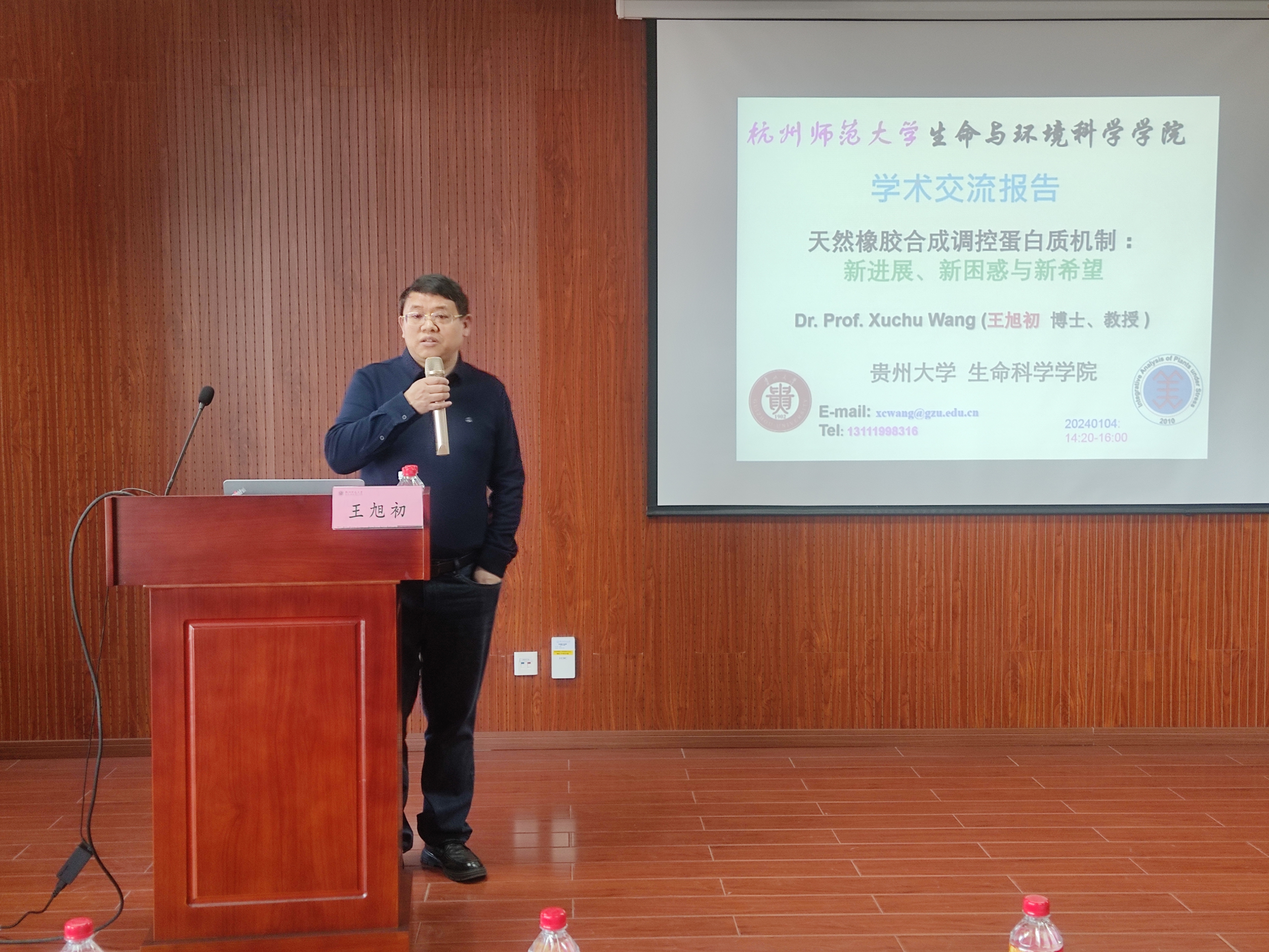 2024年1月4日下午,成人小说 在慎园15-309学术报告厅举行了2024年第38期生科撷英讲坛,国家特殊支持计划科技创新领军人才、贵州大学王旭初教授应邀来成人小说 为师生们作了题为“天然橡胶合成调控蛋白质机制:新进展、新困惑与新希望”的学术报告,报告前,薛大伟院长、张立明书记、宋垚彬副院长与王教授进行了座谈。宋垚彬副院长主持报告会,学院相关研究方向的教师和研究生积极参加。