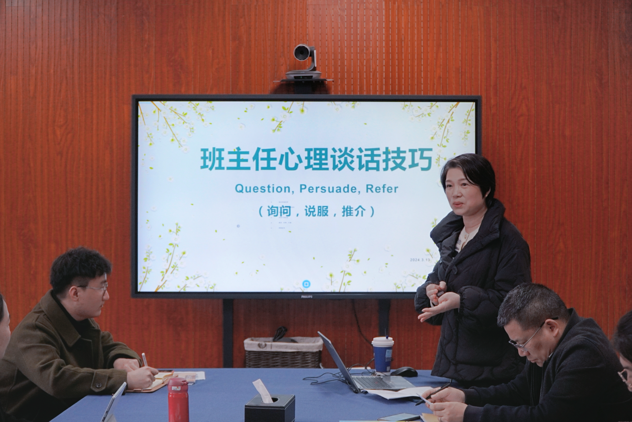 班主任心理谈话技巧会议的顺利举行,围绕学生心理健康问题,为班主任提供了一个学习和交流的机会,进一步明确了如何更有效地与学生沟通、如何更好地肩负起教育者的责任,指明了学生工作的方向。