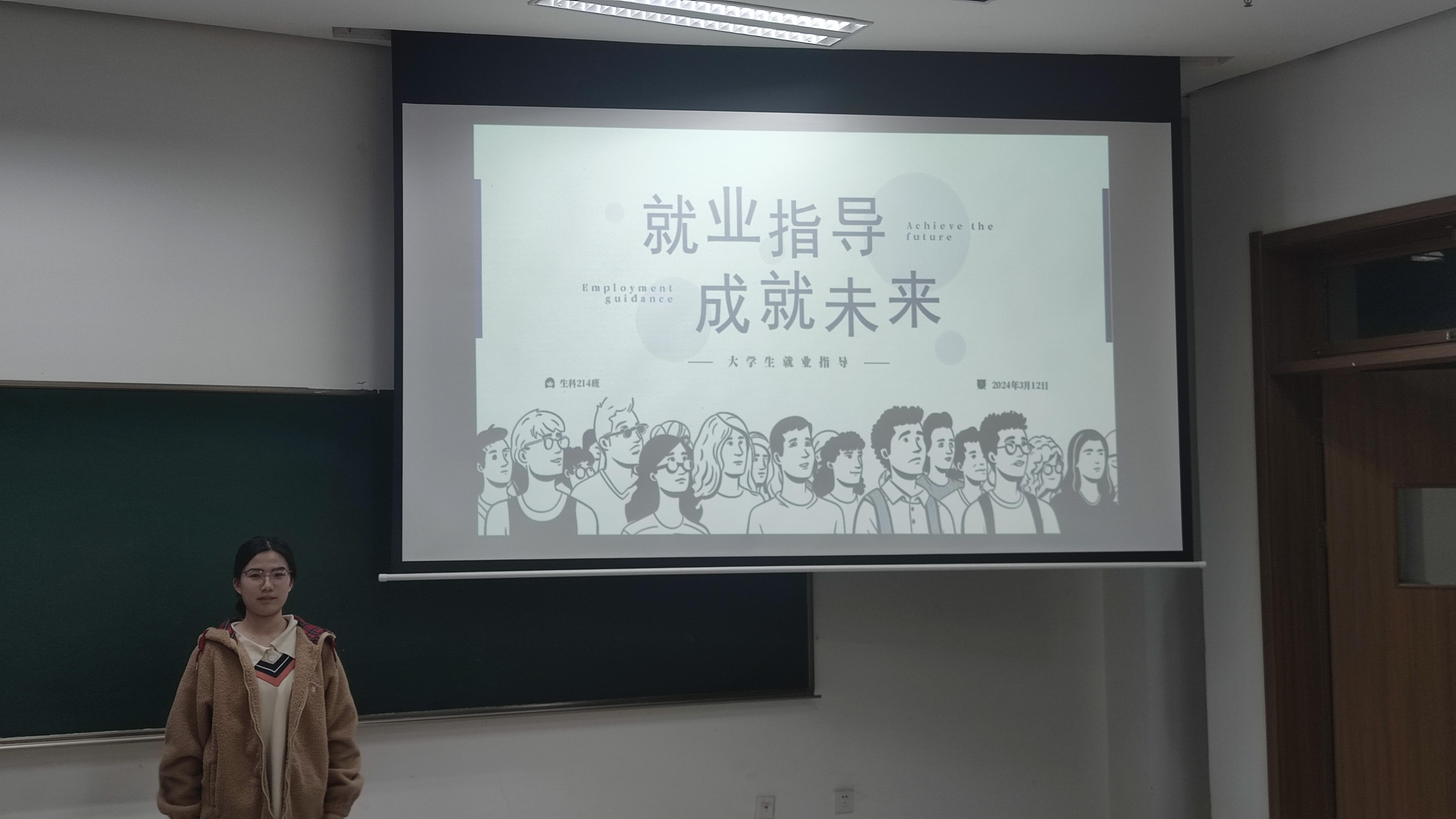2024年3月12日晚上,生科214团支部在慎园1-108举行了一场别开生面的班会,专注于大学生就业指导。本次班会由班级同学自发组织,旨在帮助同学们更好地理解就业市场的最新动态,并为即将到来的求职季做好准备。