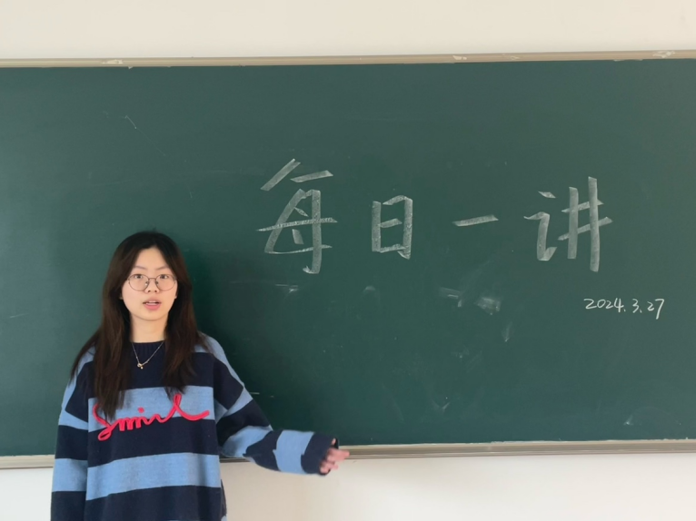 2024年3月27日早上上课之前,在慎园1号楼306教室刘文婷给我们带来了以《不负春光,起而行之》为主题的演讲。