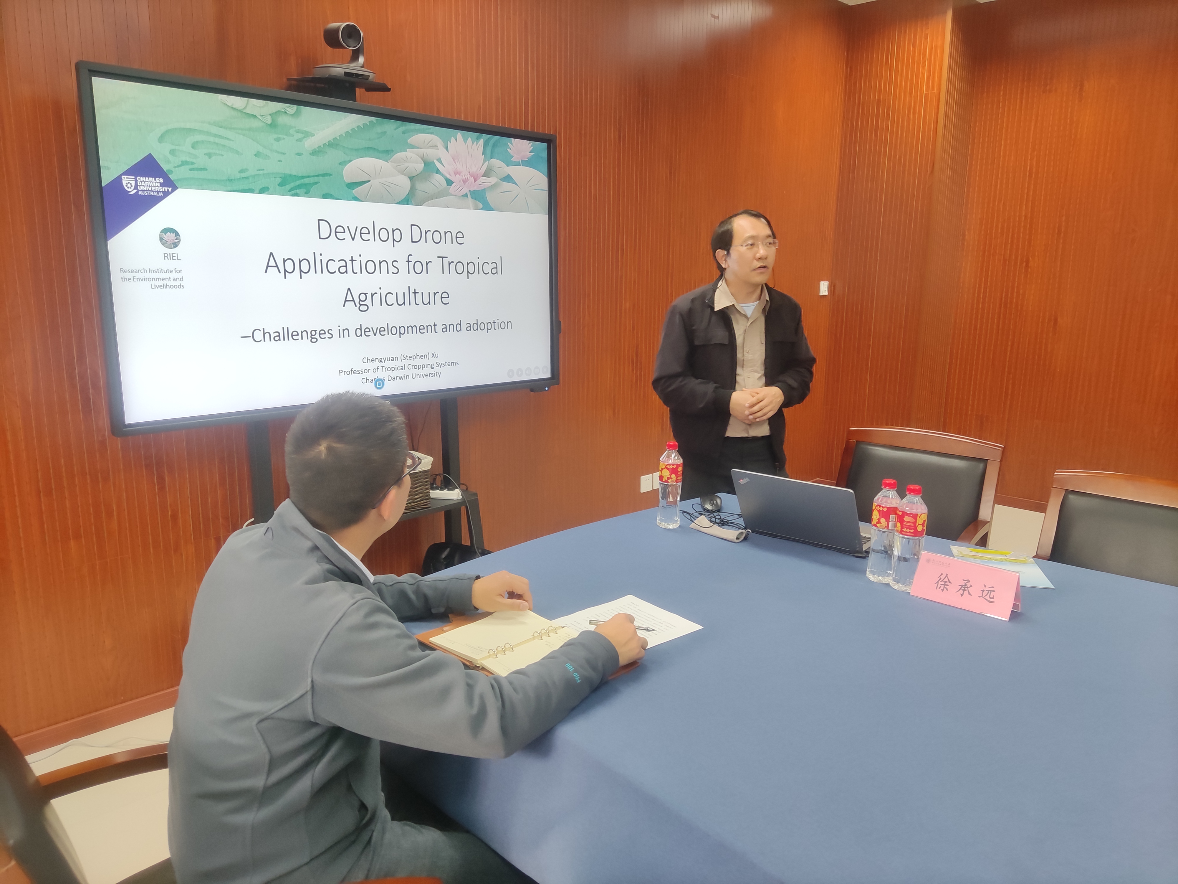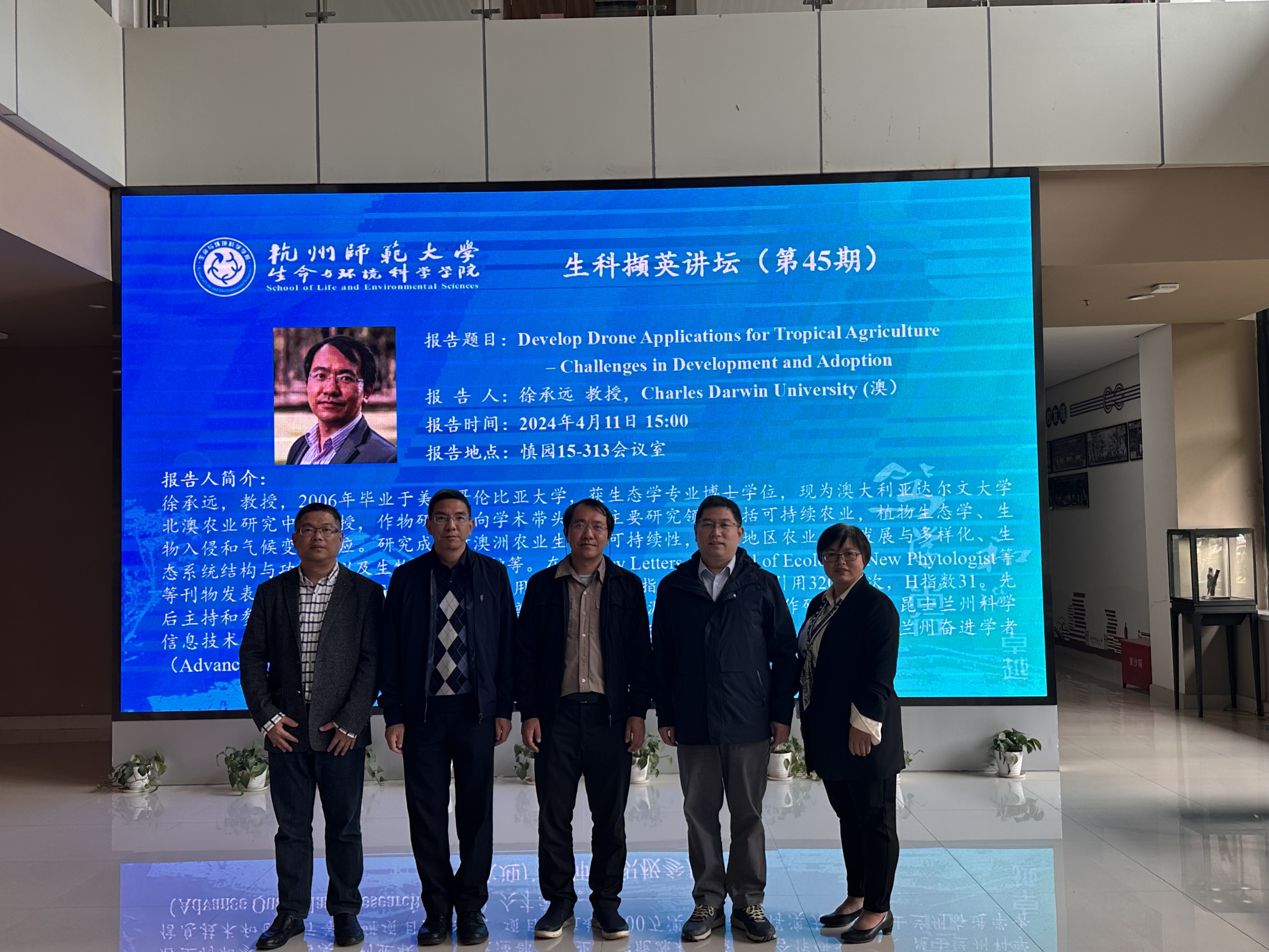 2024年4月11日下午,成人小说 在慎园15-313会议室举行了2024年第45期生科撷英讲坛,澳大利亚查尔斯·达尔文大学徐承远教授应邀来成人小说 为师生们作了题为“Develop Drone Applications for Tropical Agriculture – Challenges in Development and Adoption”的学术报告,报告前,薛大伟院长、张立明书记、宋垚彬副院长、陈慧丽教授与徐教授进行了座谈会。宋垚彬副院长主持报告会,生态学相关教师和研究生积极参加。