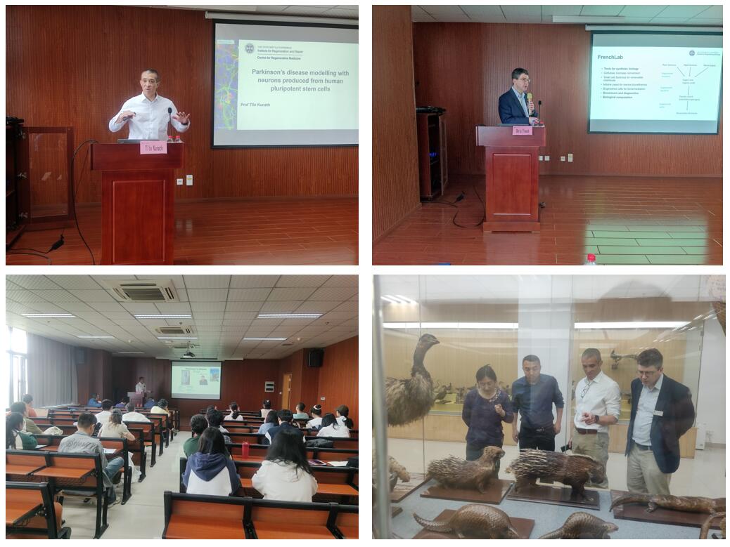 报告会上,Prof. Tilo Kunath介绍了其实验室在编码α-synuclein蛋白诱导多能干细胞(iPSCs)技术建立帕金森氏症的稳健模型研究进展,α-synuclein蛋白在神经元系统中作为潜在调节药物和神经元先天免疫中起作用,其研究成果为临床应用提供了细胞产品,为推进人类胚胎干细胞(ES)和iPS细胞在帕金森氏症细胞替代疗法中的应用。Prof. Chris French介绍了其实验室在生物传感器、诊断和生物计算方面最新研究成果,初步研究表明,生物传感器可以感知汗液中生物标志物的生理浓度,并识别异常浓度,通过制造各种生物传感器,可以更全面地了解人体生理状况,用于环境和医疗保健监测等。