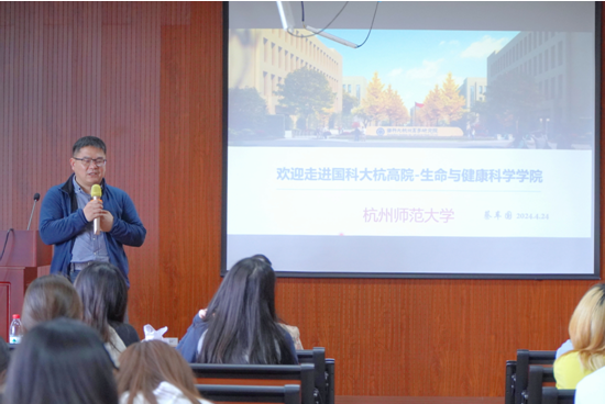 4月24日下午,国科大杭州高等研究院生命与健康科学学院副院长蔡车国一行莅临成人小说 开展2025年研究生招生宣讲,学院党委副书记王倩参会并致欢迎词。