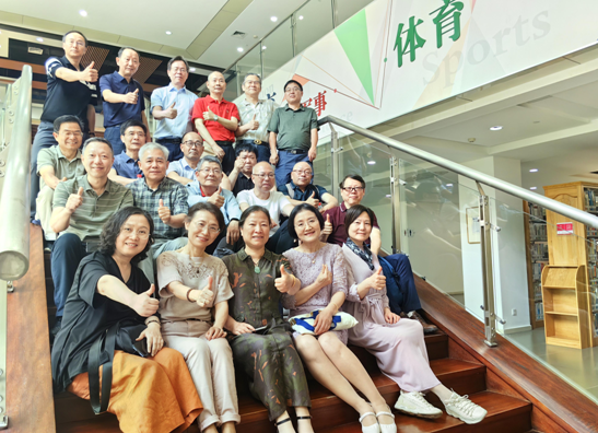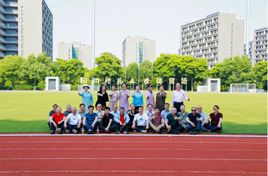 校友们在学校亚运场地合影