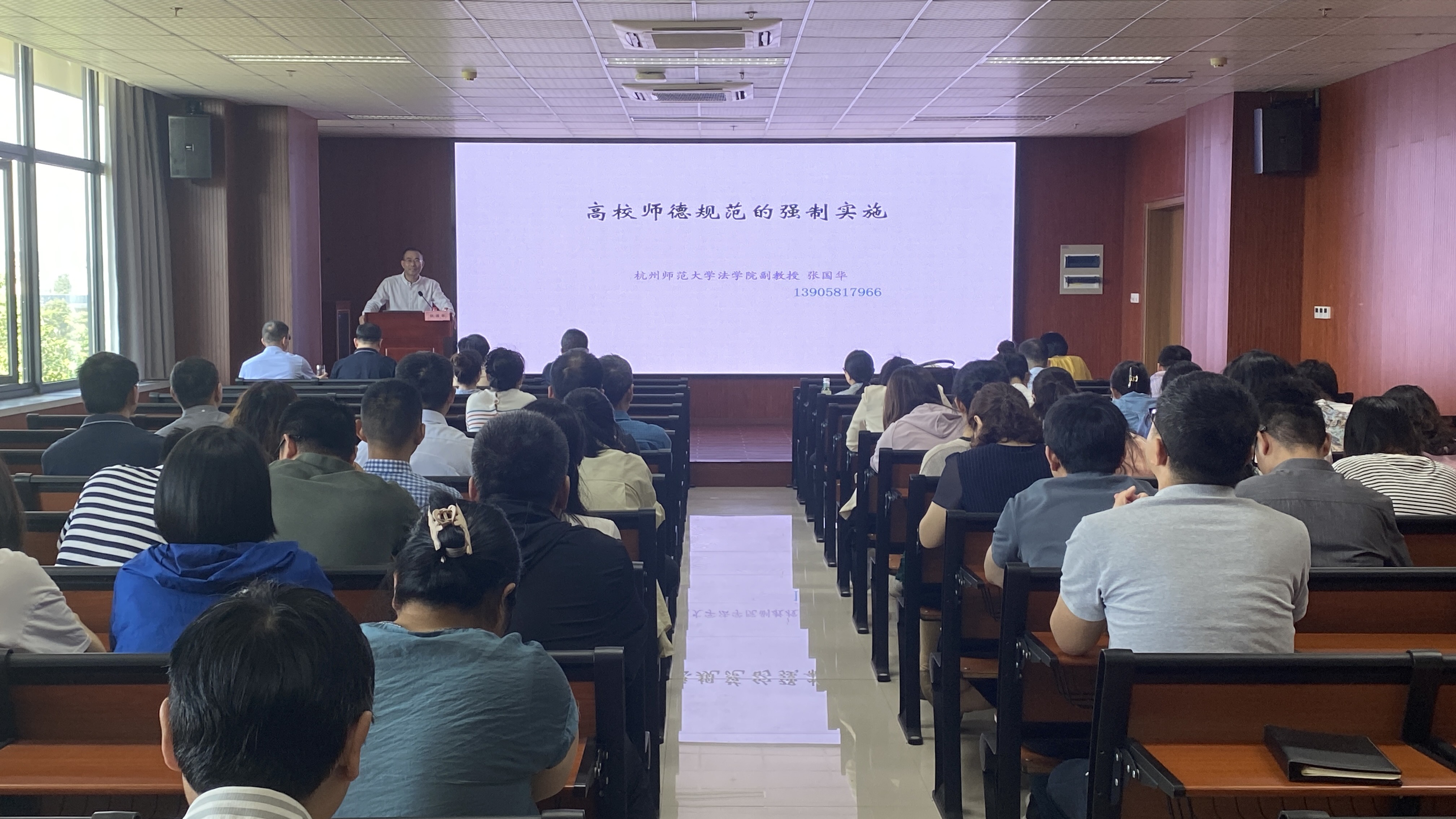 5月29日下午,成人小说 召开教职工大会,进行高校师德规范集体培训,培训邀请成人小说 法学院副教授张国华进行题为《高校师德规范的强制实施》的主题讲座。
