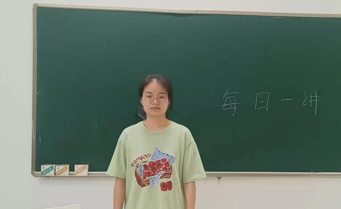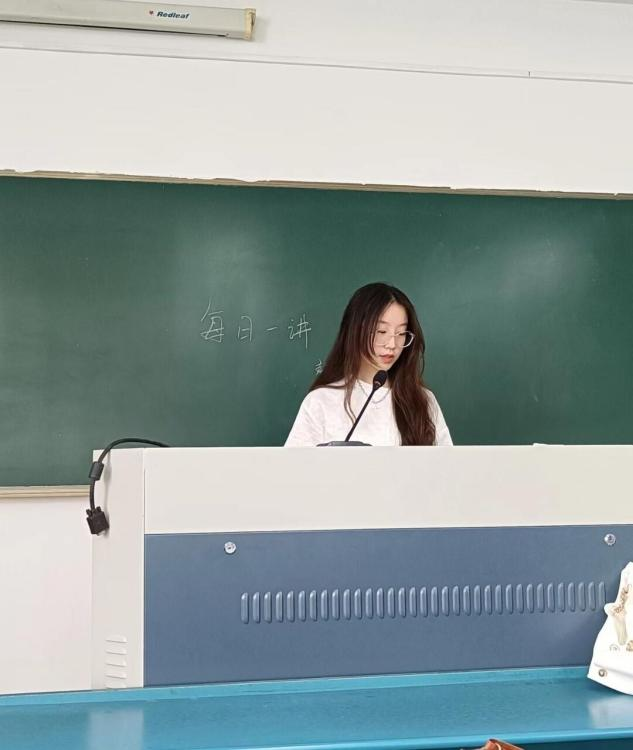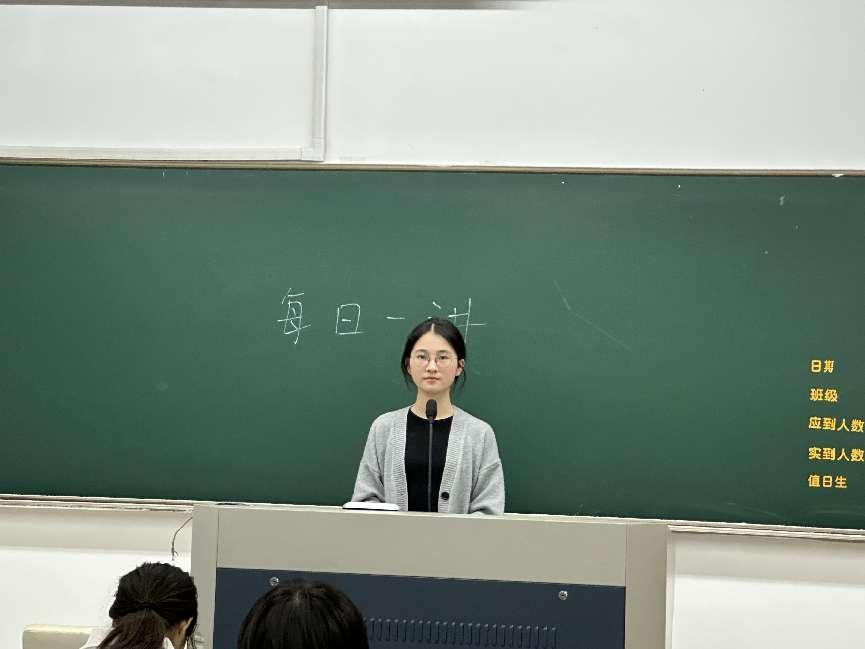 2024年5月27日星期一的早课开始前,来自环工211班的赵泓芮同学在早课教室里进行了以“最是阅读滋味长”为主题的每日一讲活动。