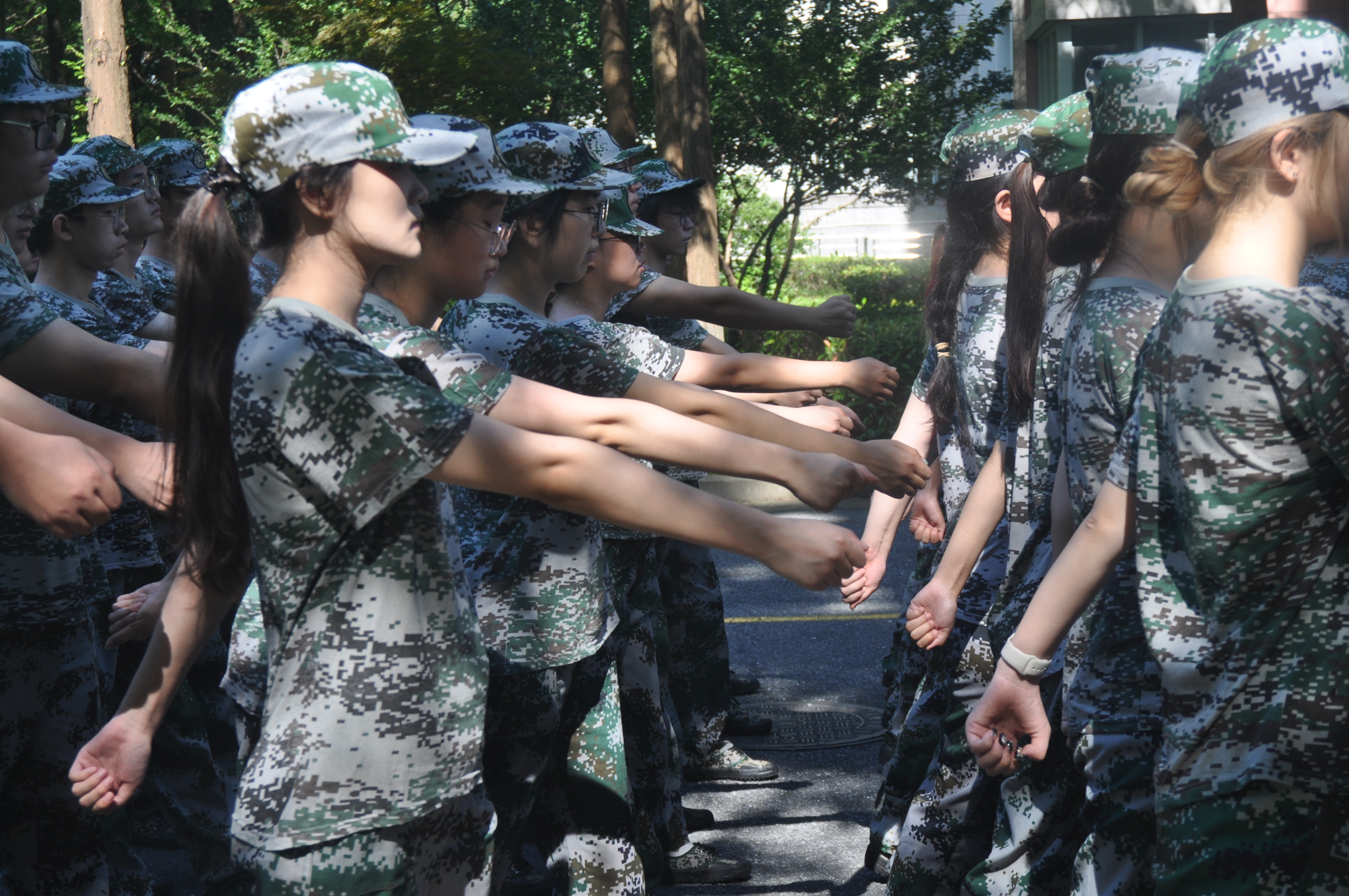 7月4日,军训第六日,烈日灼人,却挡不住四营一连全体成员对军事技能的渴望与热情。在四营一连连长的带领下,我们进行了战术训练,学习卧倒与匍匐前进这两项实战基础技能。初次尝试,我因经验不足,手法略显生疏,在卧倒时,手肘在与地面的亲密接触中不慎留下了几道细微却醒目的擦伤。虽然有些疼痛,但是它们我成长路上的小小勋章,见证着我的不懈的努力与坚持。