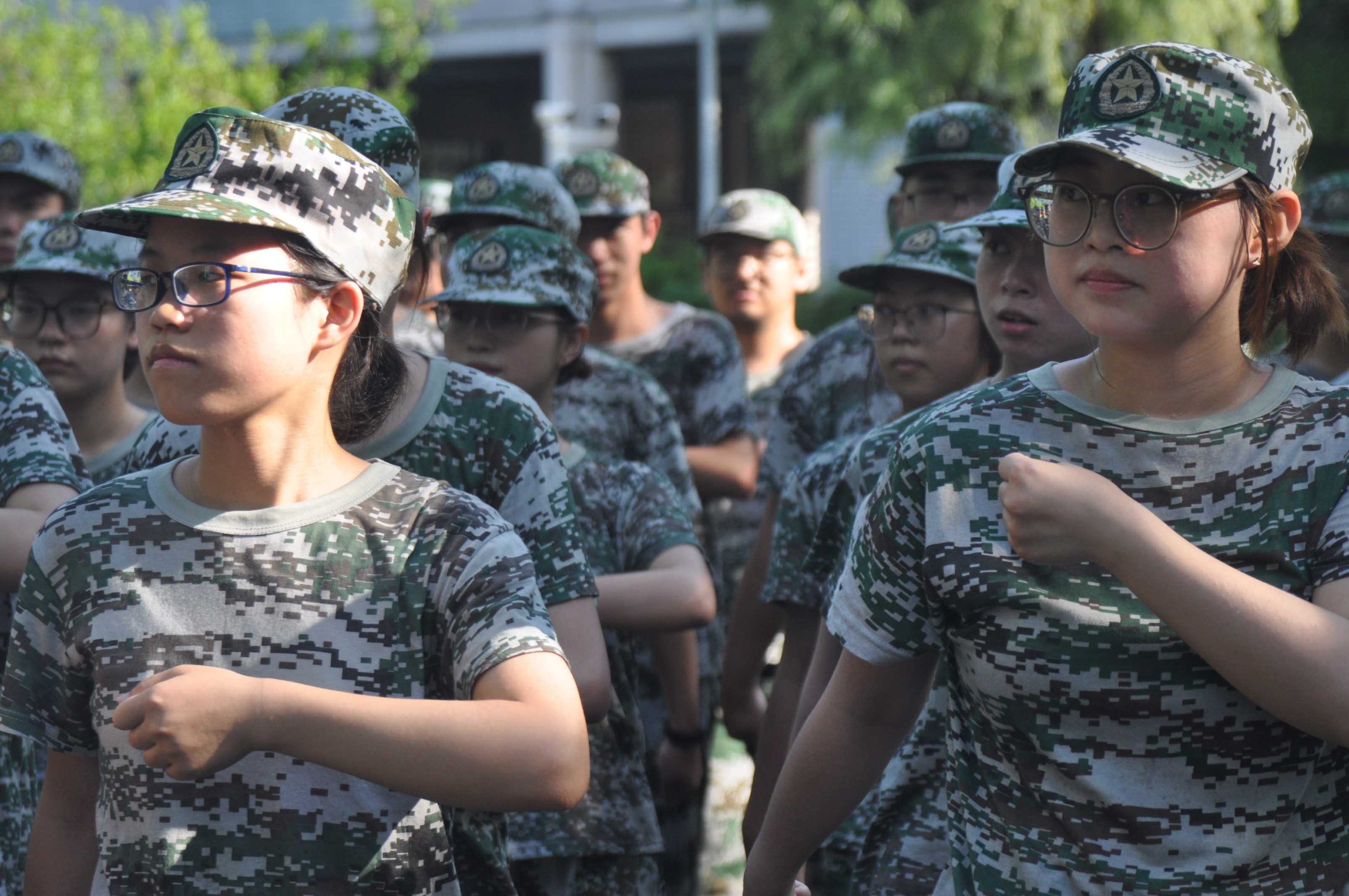 今日的操练内容丰富多彩,涵盖了"走、正、跑"的行进与立定,而重中之重,无疑是那令人筋疲力尽的正步走。当"双手抱腹"的口令响起,我们三排的战士们立刻进入了正步走的状态,准备迎接挑战……经过一个下午的不懈努力,我们的正步走技艺突飞猛进,从最初的杂乱无章,到后来教官眼中的"勉强看得过去",再到最终的"这遍很不错啊",我们的心中充满了自豪与骄傲。坐在树荫下,我们轻声交流着各自的高中往事,微风拂过,这温馨的场景怎能不让人感动!