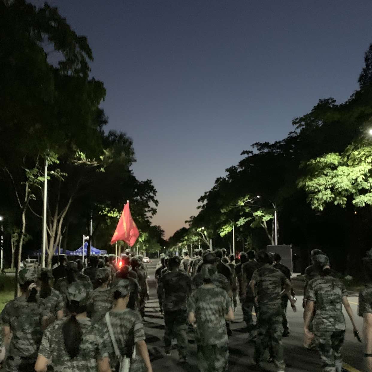 夜幕缓缓降临,四营的同学们如夜色中的星辰,汇聚在校园的小径上,踏上了集体夜晚拉练的征程。月光如银,洒在湿润的石板路上,为这寂静的夜晚添上了一抹神秘的光彩。整齐划一的步伐,如同一首节奏诗,轻盈地在校园的每一个角落回荡,唤醒了沉睡的大地,让每一砖一瓦都仿佛在倾听这青春的赞歌。