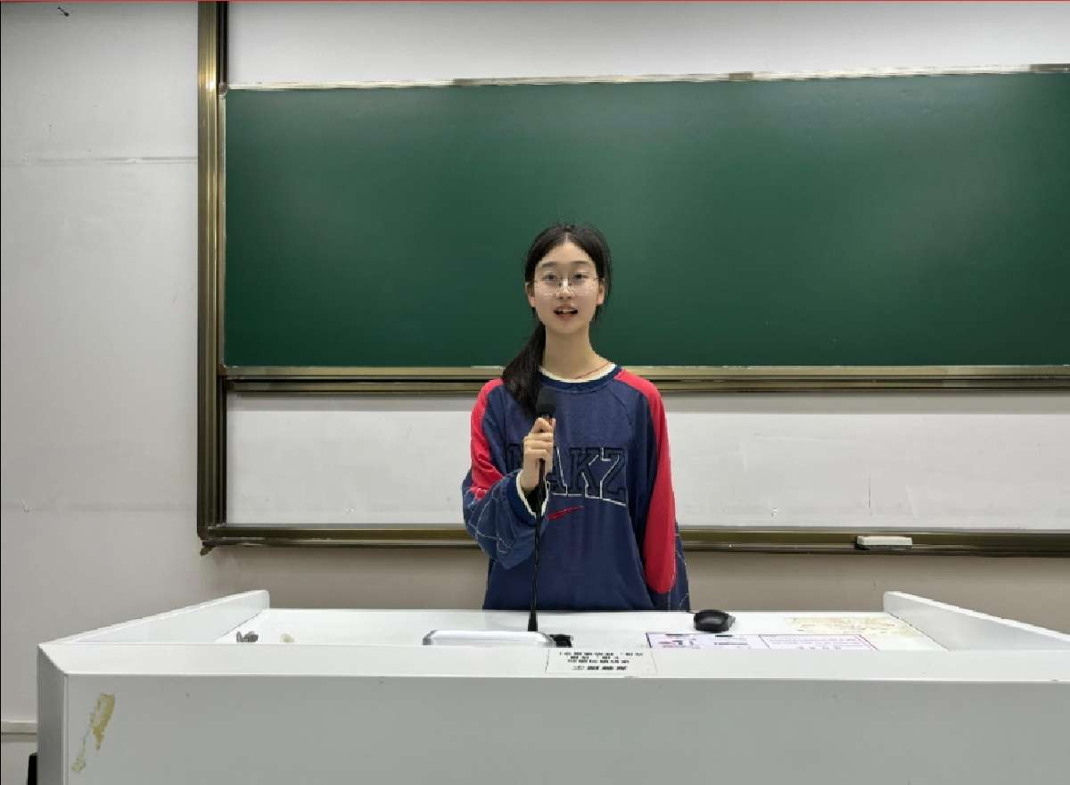2024年9月12日上午,柴梦萦同学在 A 号楼 109 教室进行了以《弘扬教育精神,做时代大先生》为主题的演讲。