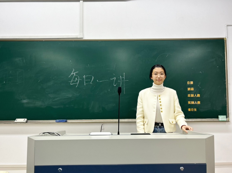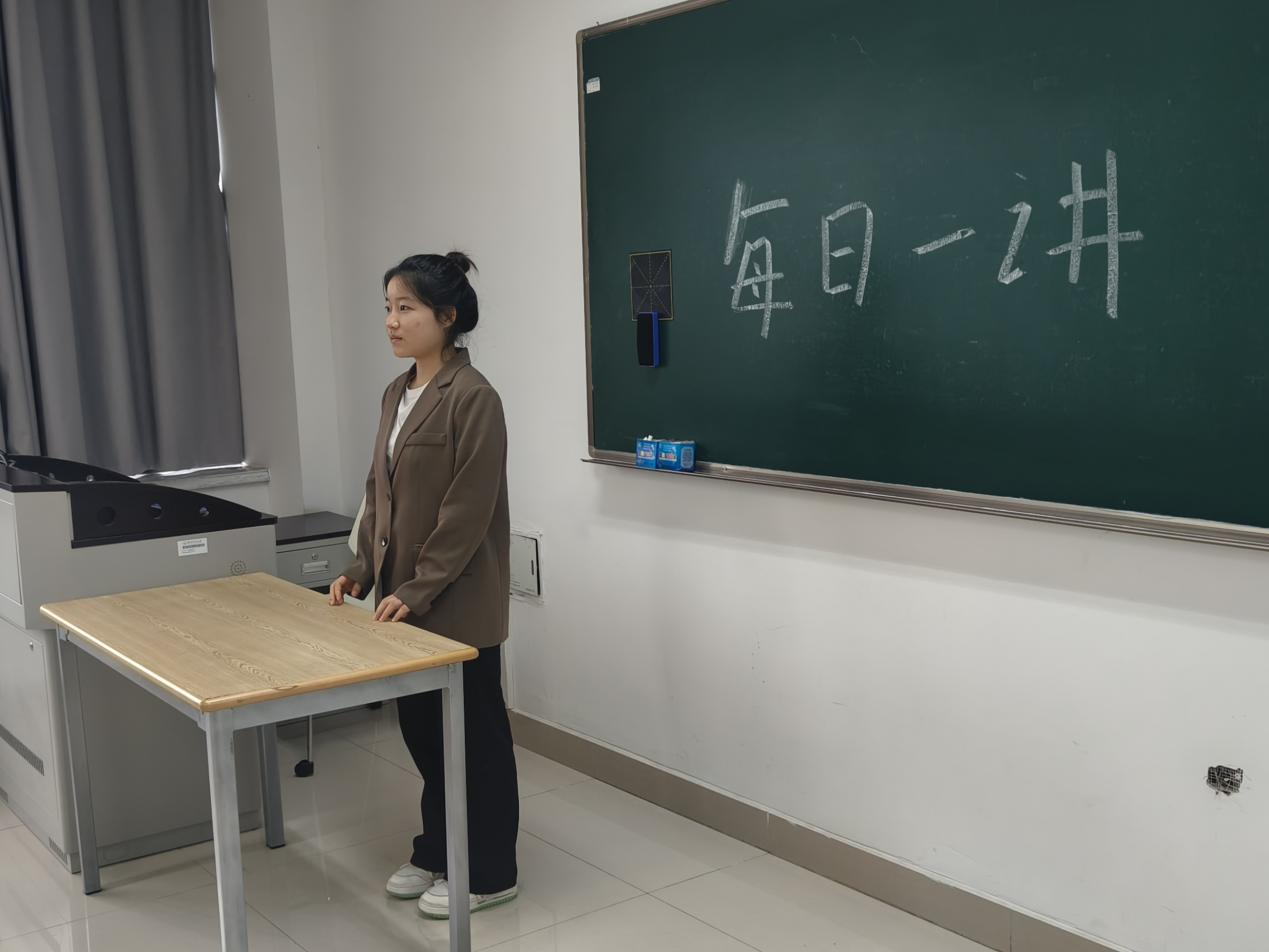 2024年10月22日,在成人小说 仓前校区慎园1号楼教室中,吕兰心同学在课前向同学们做以“青春献礼祖国,奋进书写华章”为主题的每日一讲活动。