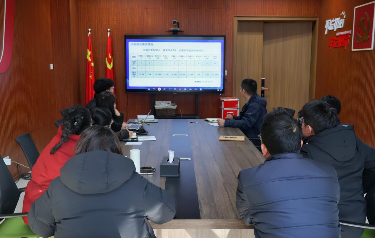 会议伊始,孙天一老师介绍了目前的本科生就业情况,紧扣今年的新就业形势及存在的问题,进行了就业工作分析,对毕业生目前学业、就业进展情况以及就业帮扶计划进行了详细汇报。