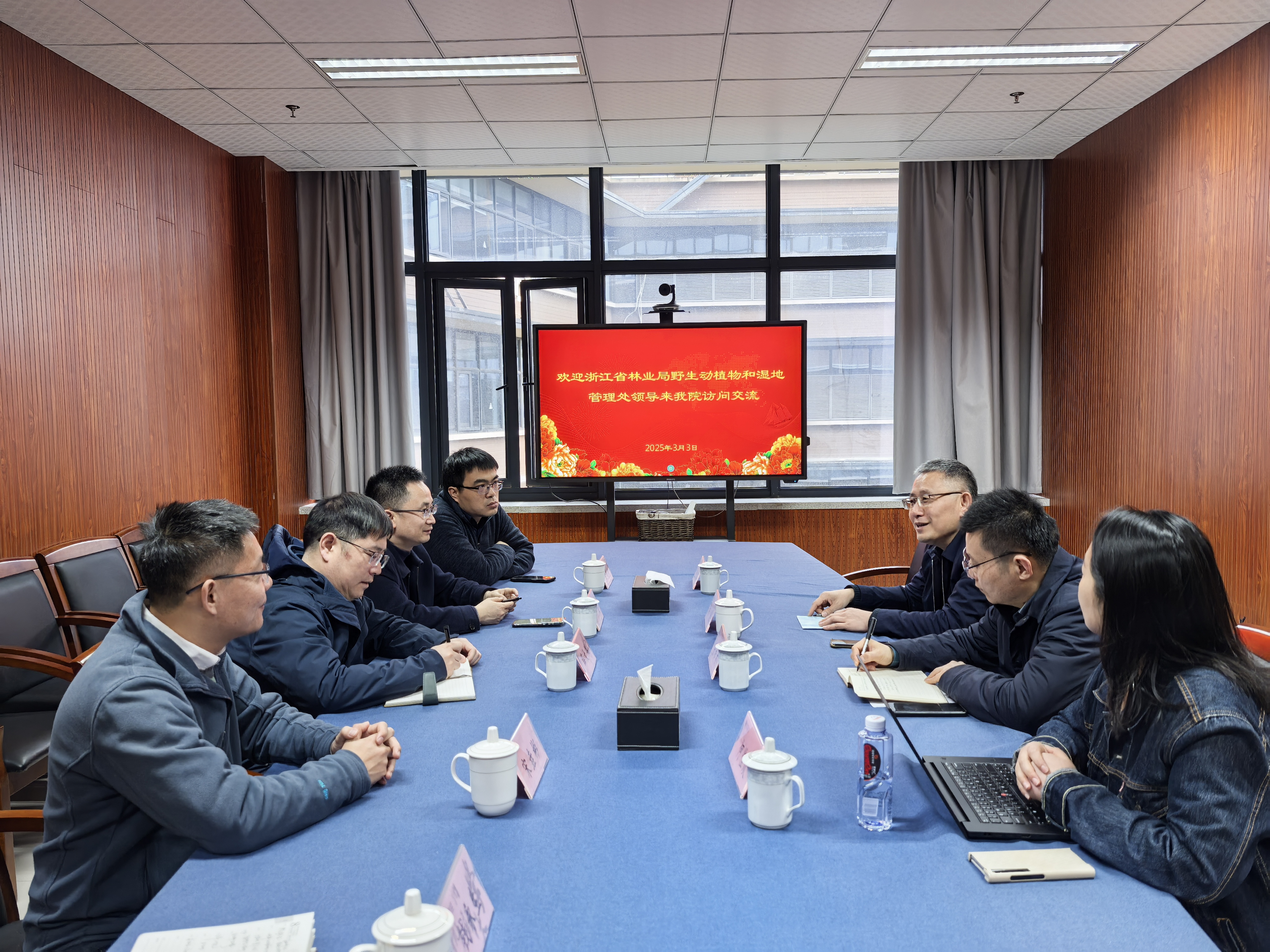 近日,浙江省林业局野生动植物和湿地管理处处长洪流、副处长张松才等一行来成人小说 访问交流,就湿地人才挂职、野生动植物保护、湿地生态修复及产学研合作等议题进行深入交流。院长薛大伟、党委书记江齐里、人事处副处长胡潭高、副院长宋垚彬及动物标本馆馆长金斌松等陪同接待并参与座谈。