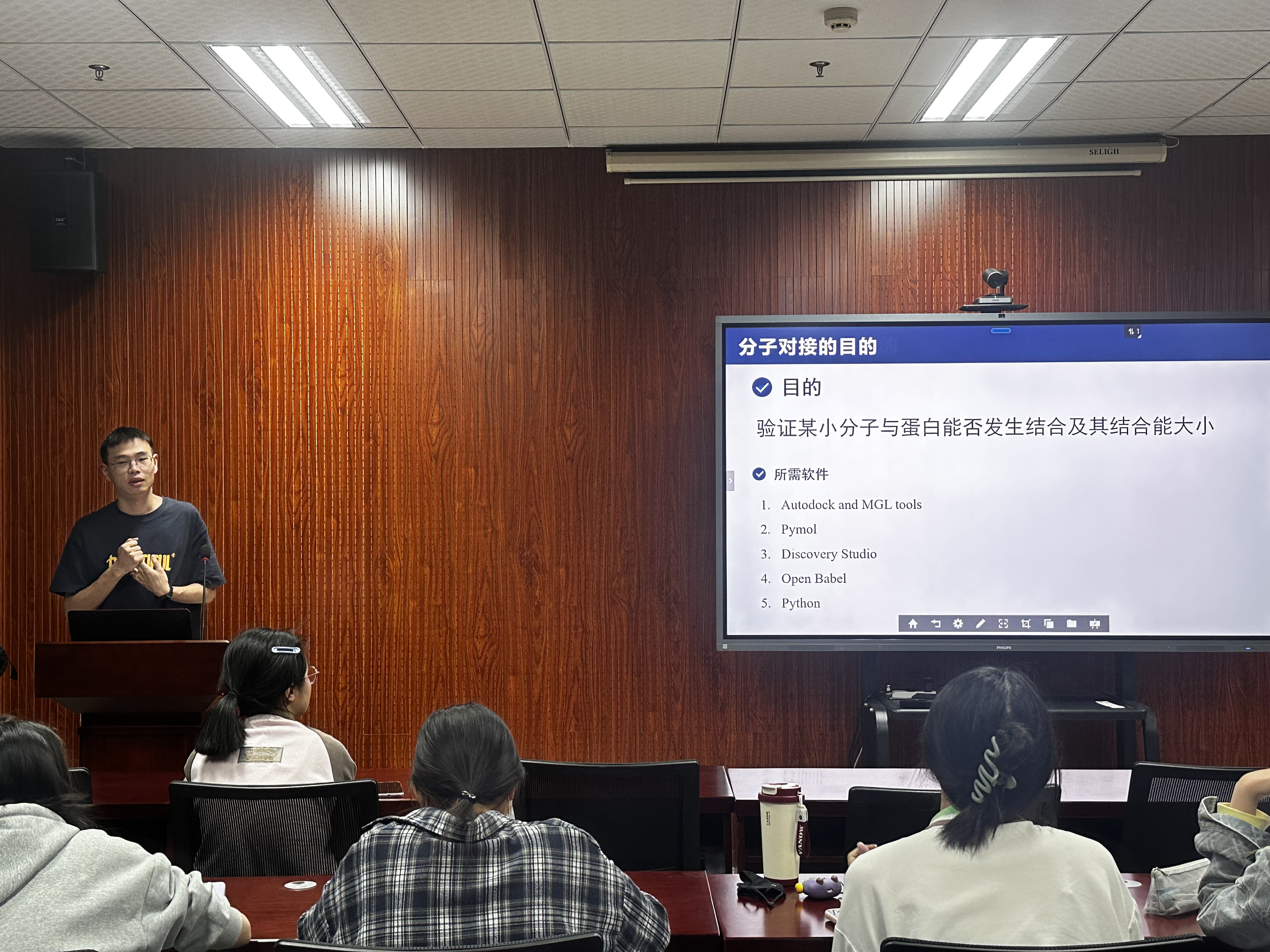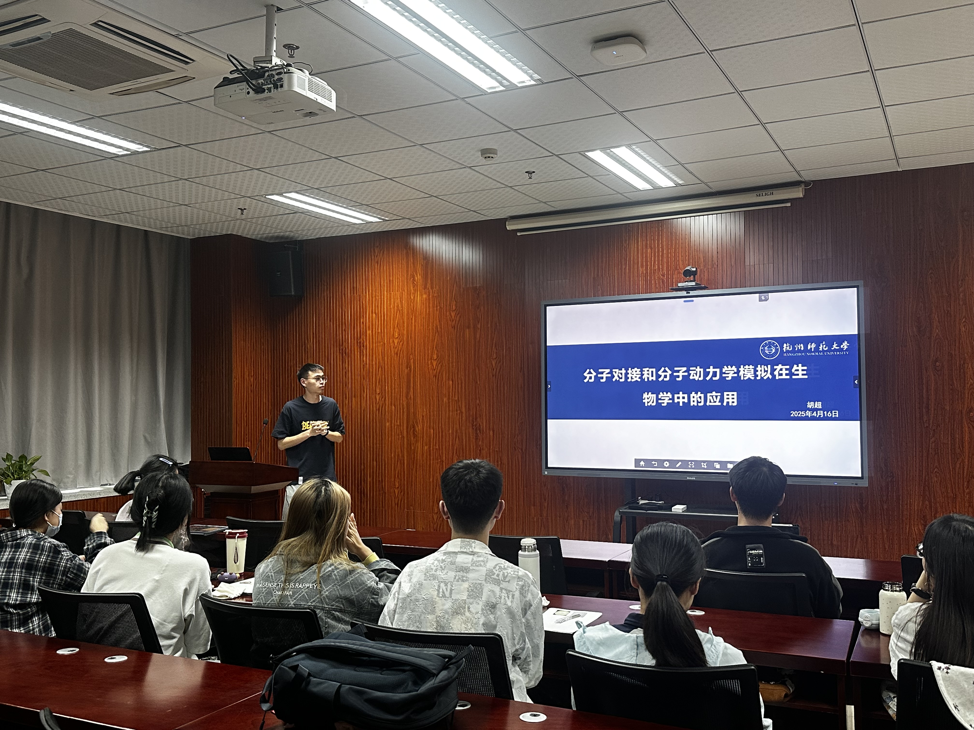 4月16日下午,成人小说 “生科创新人才菁英讲堂”第二期在慎园15-313会议室顺利举办。2024级生物学专业博士研究生胡超作题为“分子对接及分子动力学模拟在生物学中的应用”的报告,分享了分子对接与动力学模拟的核心技术、操作流程及科研应用,为拔尖班同学带来科技前沿技术。