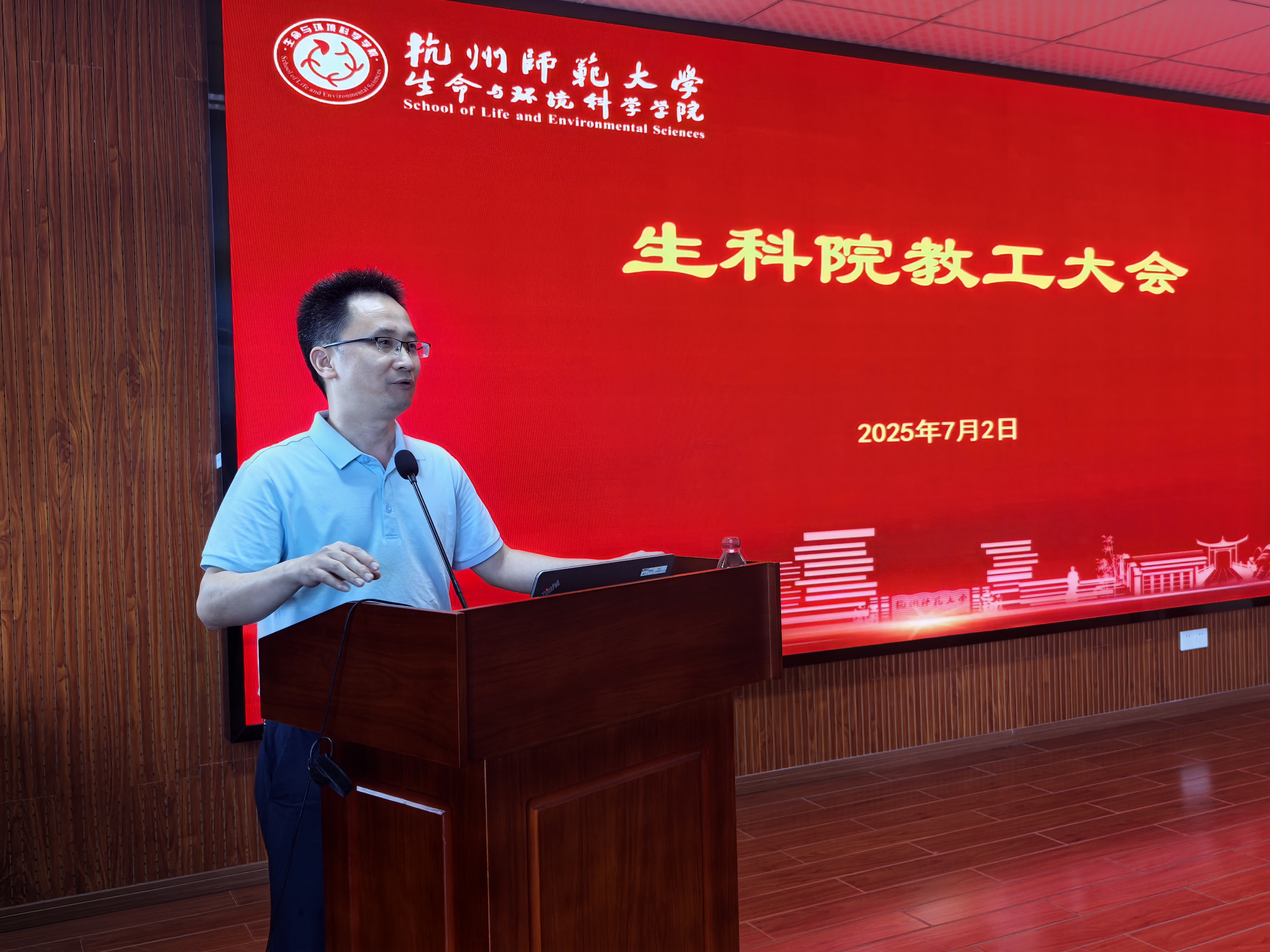 随后,江齐里从学生就业和综合治理等方面进行了工作部署。薛大伟院长从学院新一轮绩效工资实施意见、暑期实验室安全、教学收尾工作、学生科创等期末注意事项方面进行了工作部署。