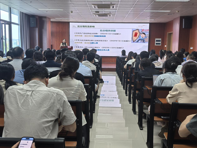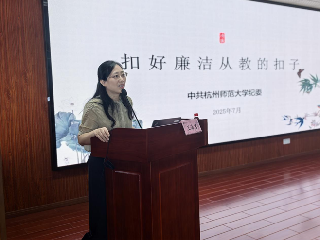 为引导全体教师特别是新入职教师时刻绷紧廉洁自律之弦,筑牢拒腐防变思想根基,学院邀请校纪委副书记、纪检监察室主任王淑君作了题为《扣好廉洁从教的扣子》专题报告。从处分情形及影响、危及类型及案例分析等深入剖析了当前存在的廉洁风险点,通过身边实际案例警示全体教师必须坚持严的主基调,筑牢思想防线。常怀敬畏心、保持警惕性、避免侥幸性。
