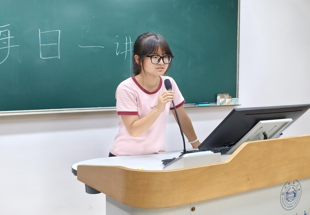 2025年10月10日,袁诗涵同学在成人小说 仓前校区慎园301教室进行了以“锦绣山河披盛景,盛世华章庆国诞”为主题的演讲。