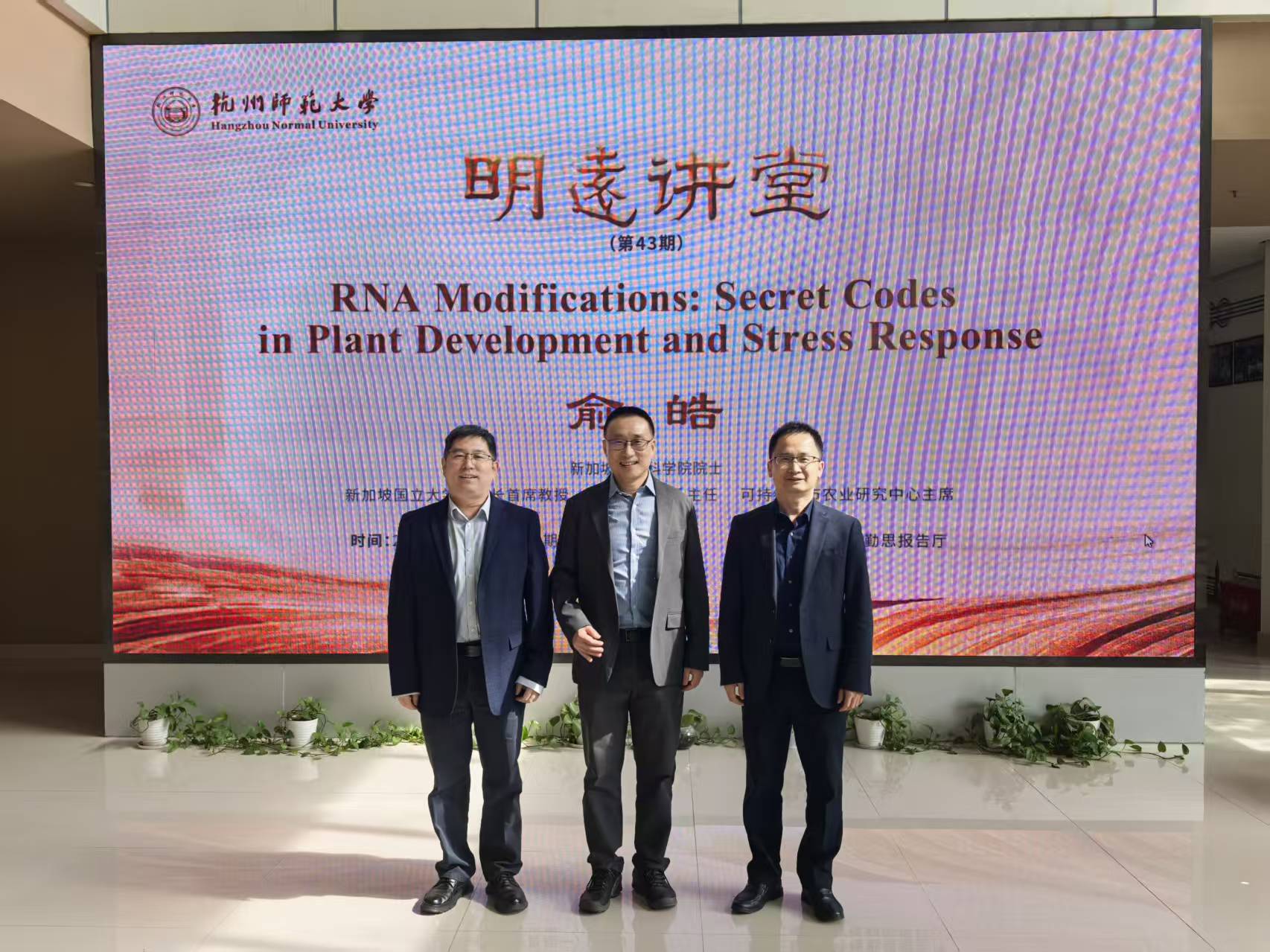 作为此次访问的重要环节,俞皓院士在学校“明远讲堂”为全校师生带来了一场题为 《RNA Modifications: Secret Codes in Plant Development and stress Response》 的精彩学术报告。