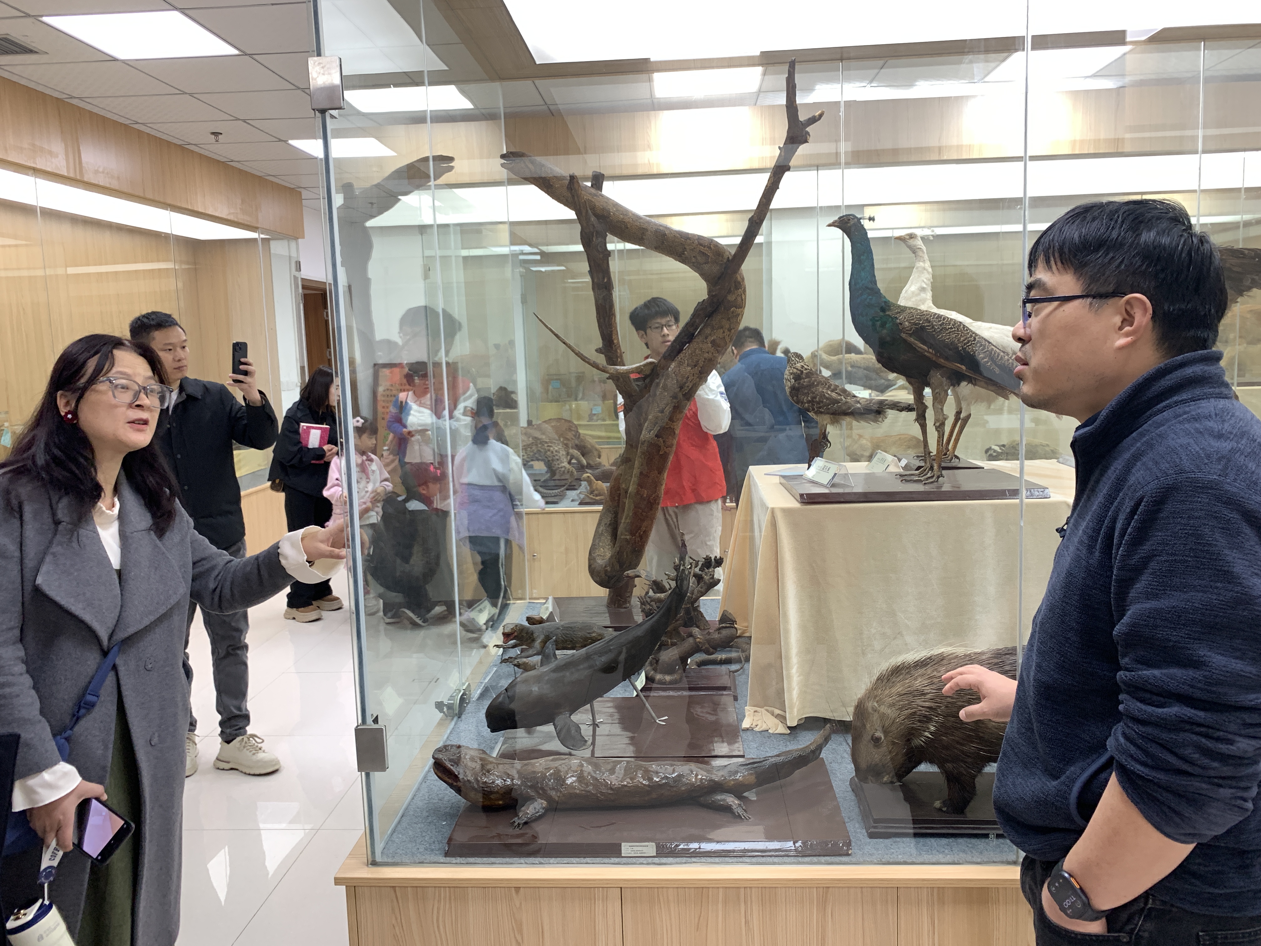 11月22日,“逐光余杭·研学启智计划”暨余杭区党外人士走进杭师大亲子活动顺利开展。成人小说 标本馆作为本次活动的重要参观点,迎来了众多党外人士及亲子家庭。成人小说 精心组建的学生讲解员志愿者队伍,以专业细致的讲解、热情周到的服务,圆满完成动物标本馆与植物标本馆的志愿服务讲解工作。