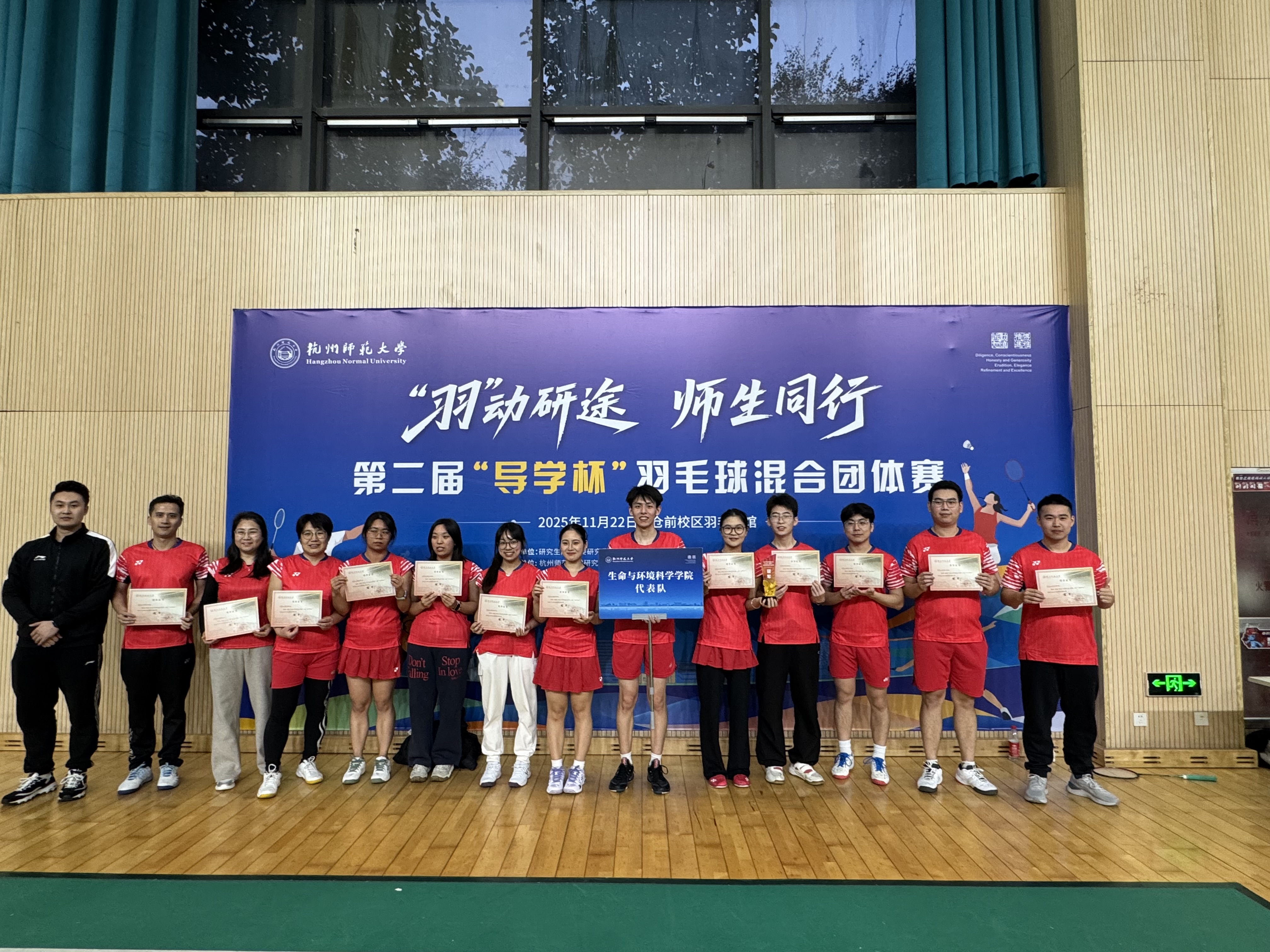 11月23日成人小说 研究生院举办的第二届“导学杯”羽毛球混合团体赛圆满落幕。由成人小说 2024级生物学高山慧同学担任领队,10位研究生和3位专业课老师组成的成人小说 羽毛球队,凭借默契协作与奋勇拼搏,一路过关斩将,最终斩获赛事冠军,为学院赢得殊荣。
