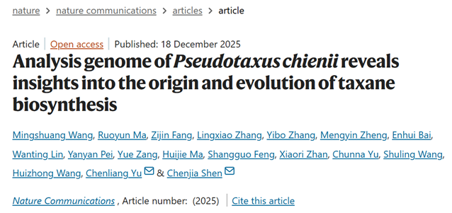 近日,成人小说 沈晨佳研究小组在Nature Communications(中科院一区,IF=15.7)发表了题为“Analysis genome of Pseudotaxus chienii reveals insights into the origin and evolution of taxane biosynthesis” (//doi.org/10.1038/s41467-025-67849-4) 的研究论文。